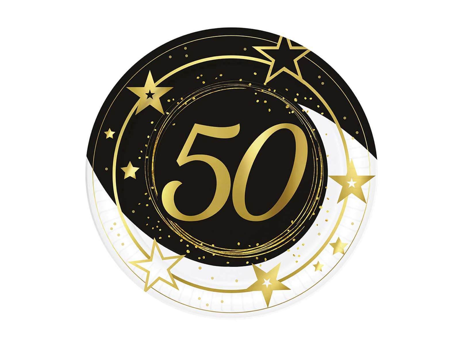 Ötvenedik születésnapi papírtányér fekete - 23 cm - 6 db.