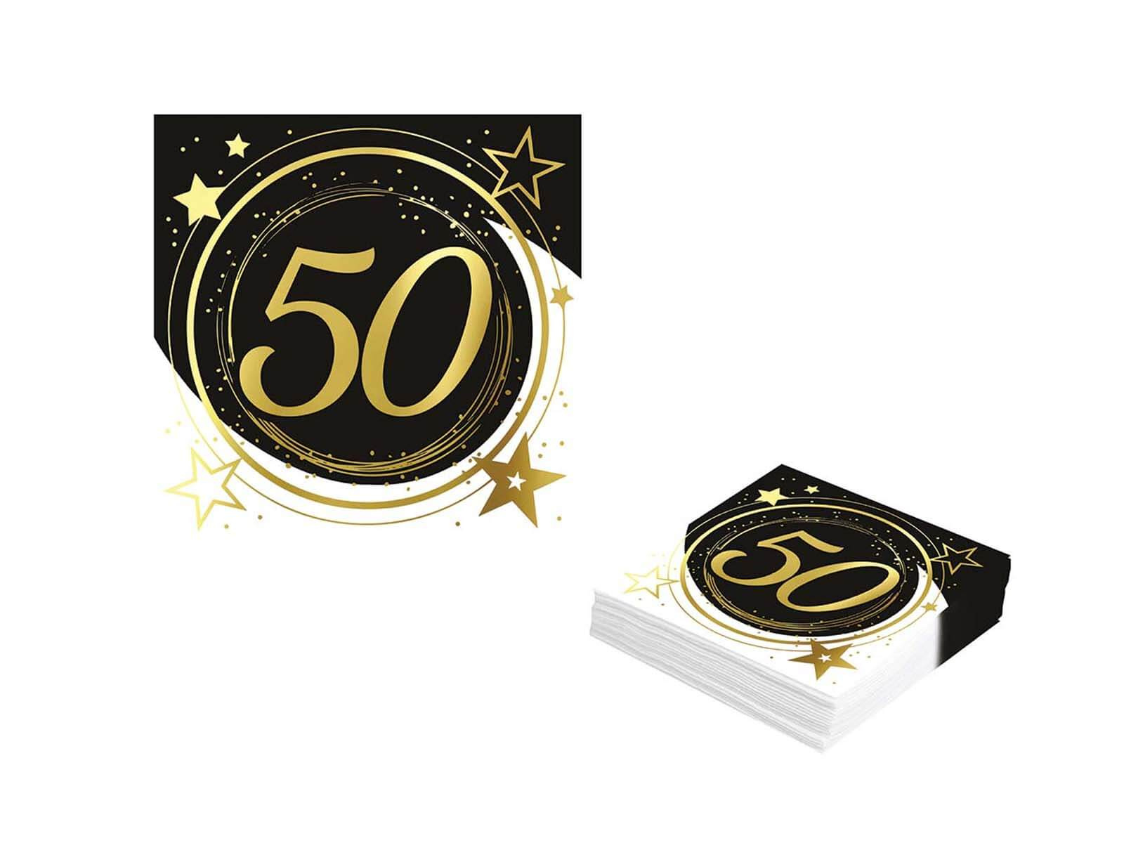 Ötvenedik születésnapi party szalvéta fekete - 33 cm - 12 db.