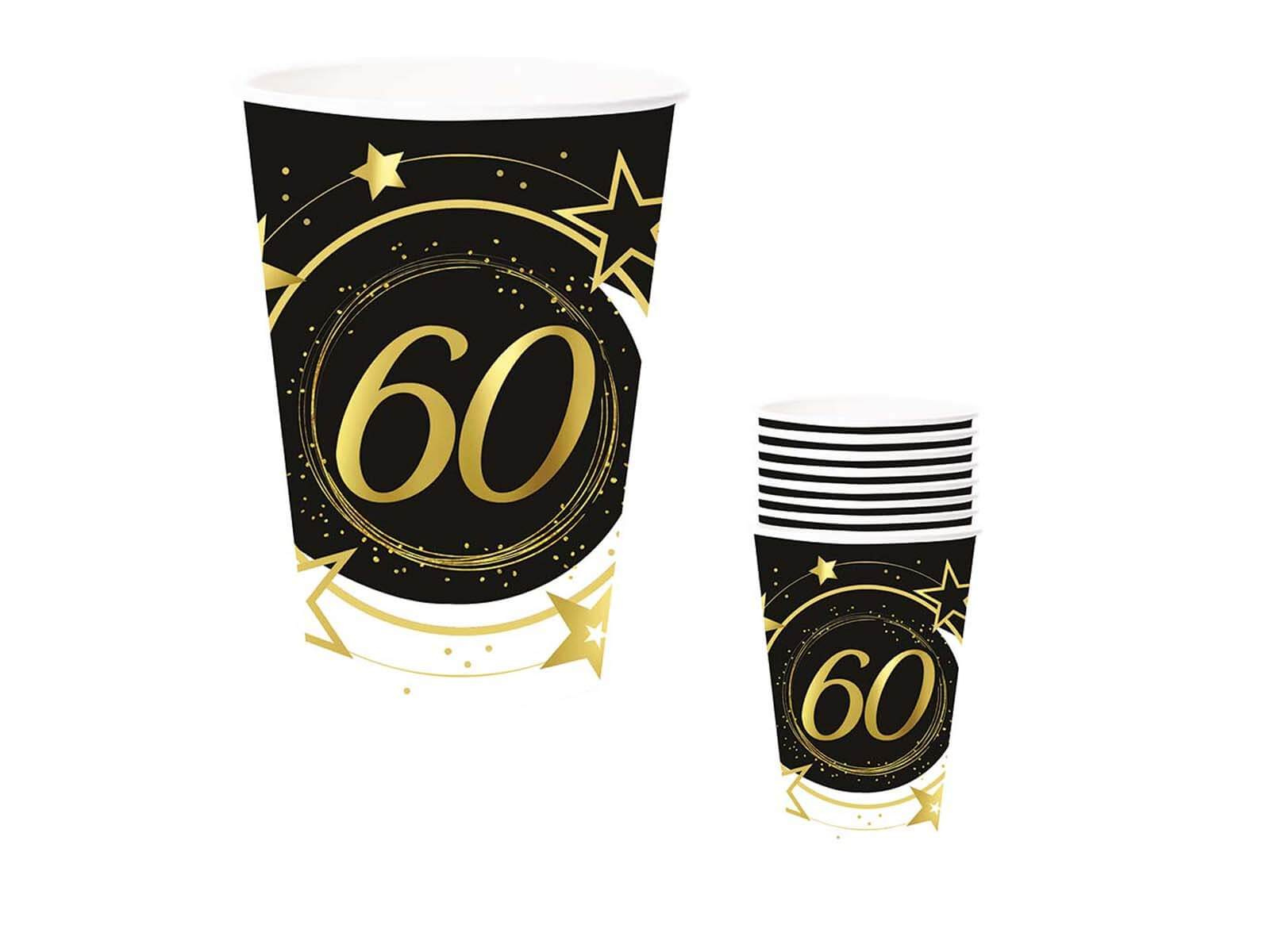 Papírpoharak 60. születésnapra fekete - 240 ml - 6 db.