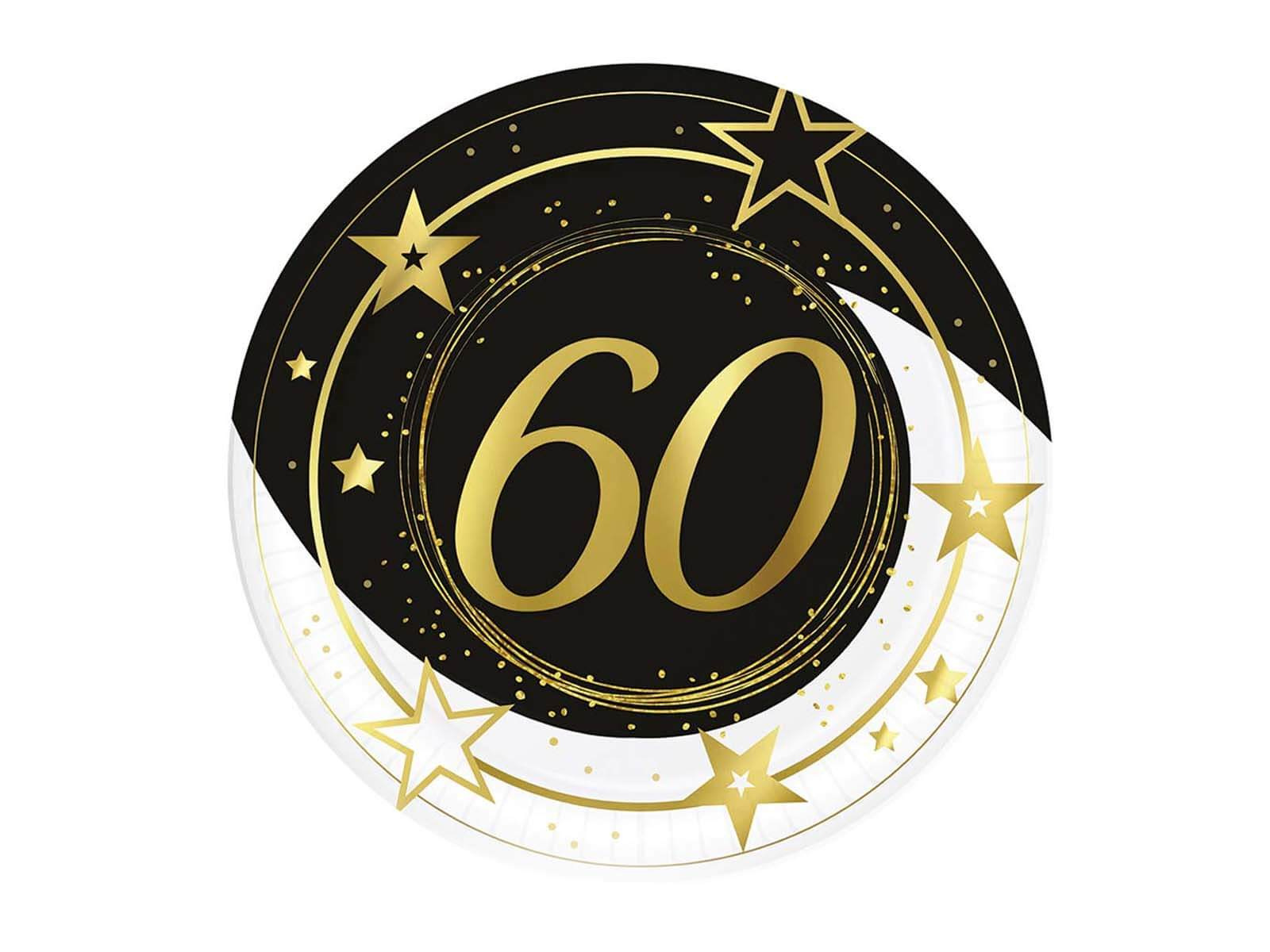 Papírtányér 60. születésnapra fekete - 23 cm - 6 db.