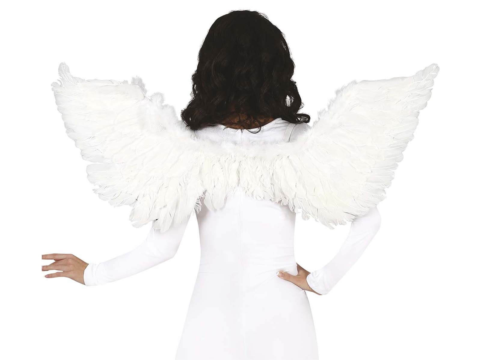 Csodálatosan megmunkált fehér angyalszárnyak 106 cm széles, tökéletes kiegészítője minden angyal ruhájának. Ideális felnőttek és gyermekek számára egyaránt. A szárnyakat gondosan díszítették valódi tollakkal, ami rendkívül hiteles és festői megjelenést kölcsönöz nekik.