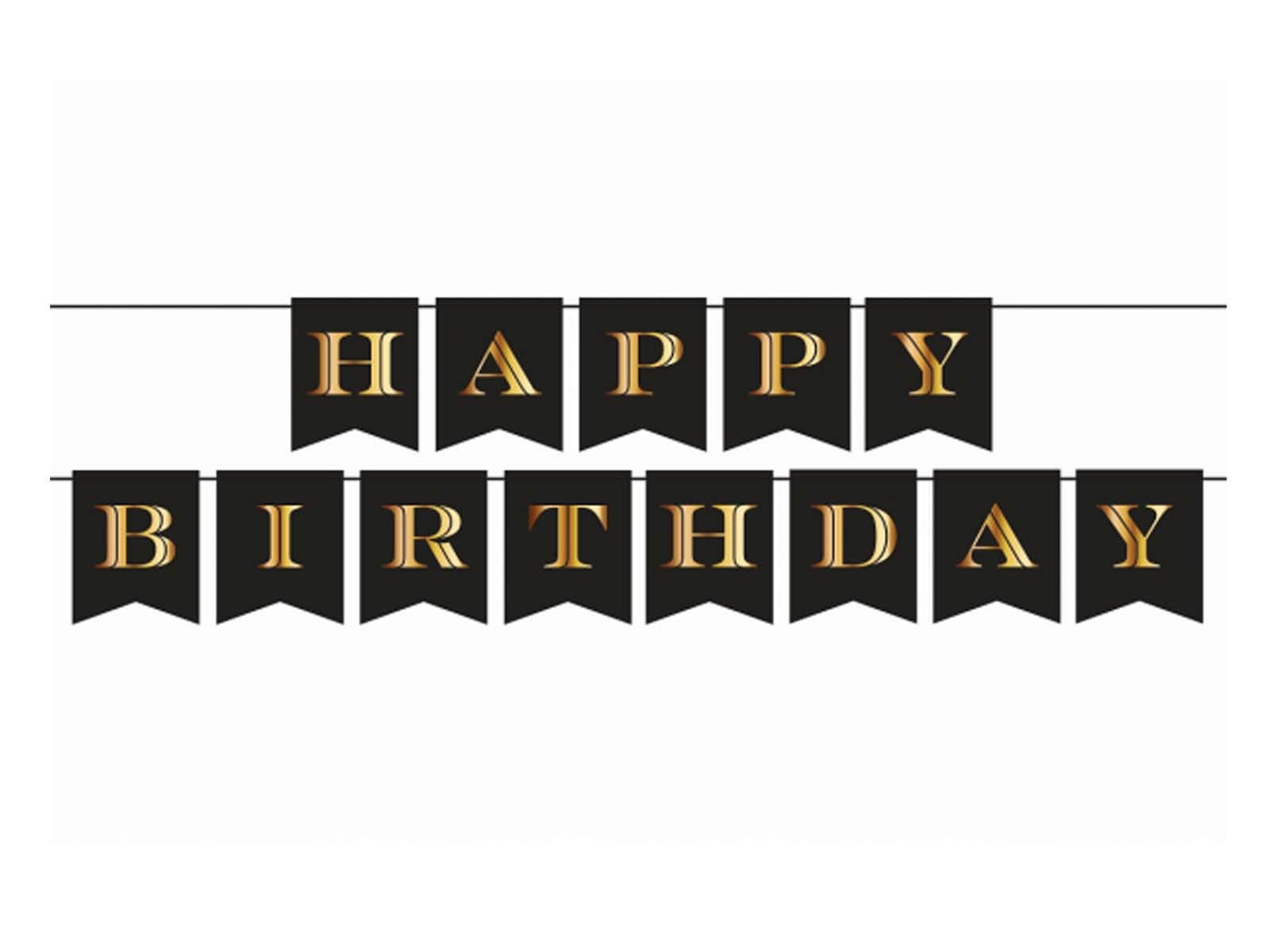 Fekete zászlós banner Happy Birthday felirattal - 250 cm - 1 db.