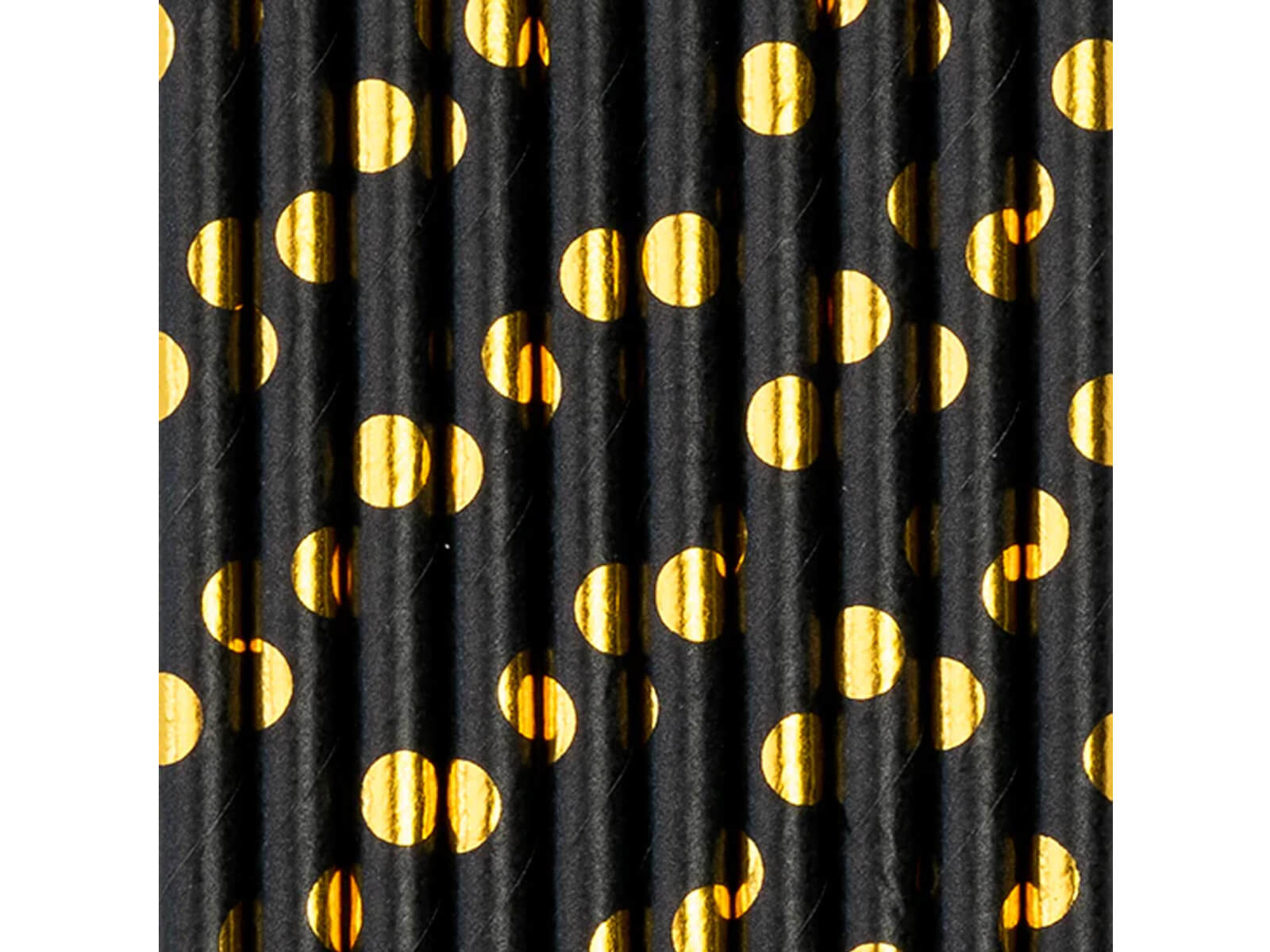 Fekete cső szívószálak arany pöttyökkel - 10 db.