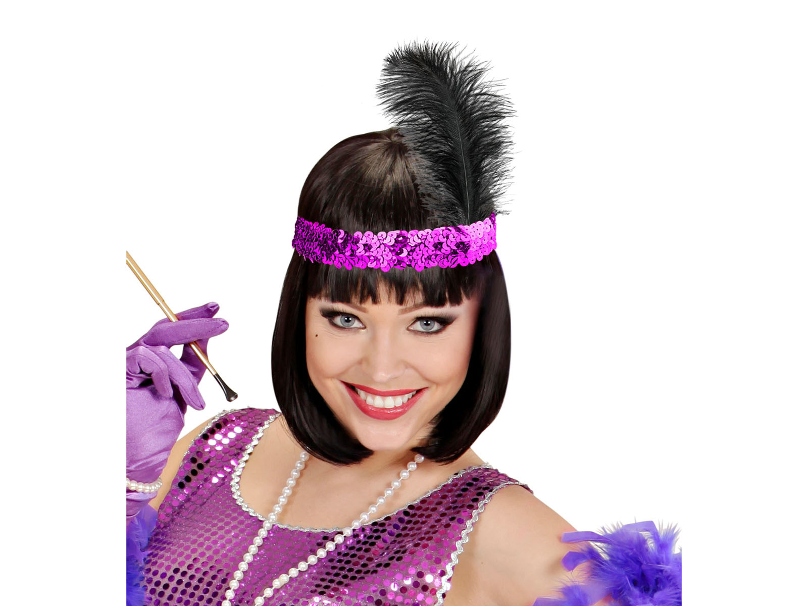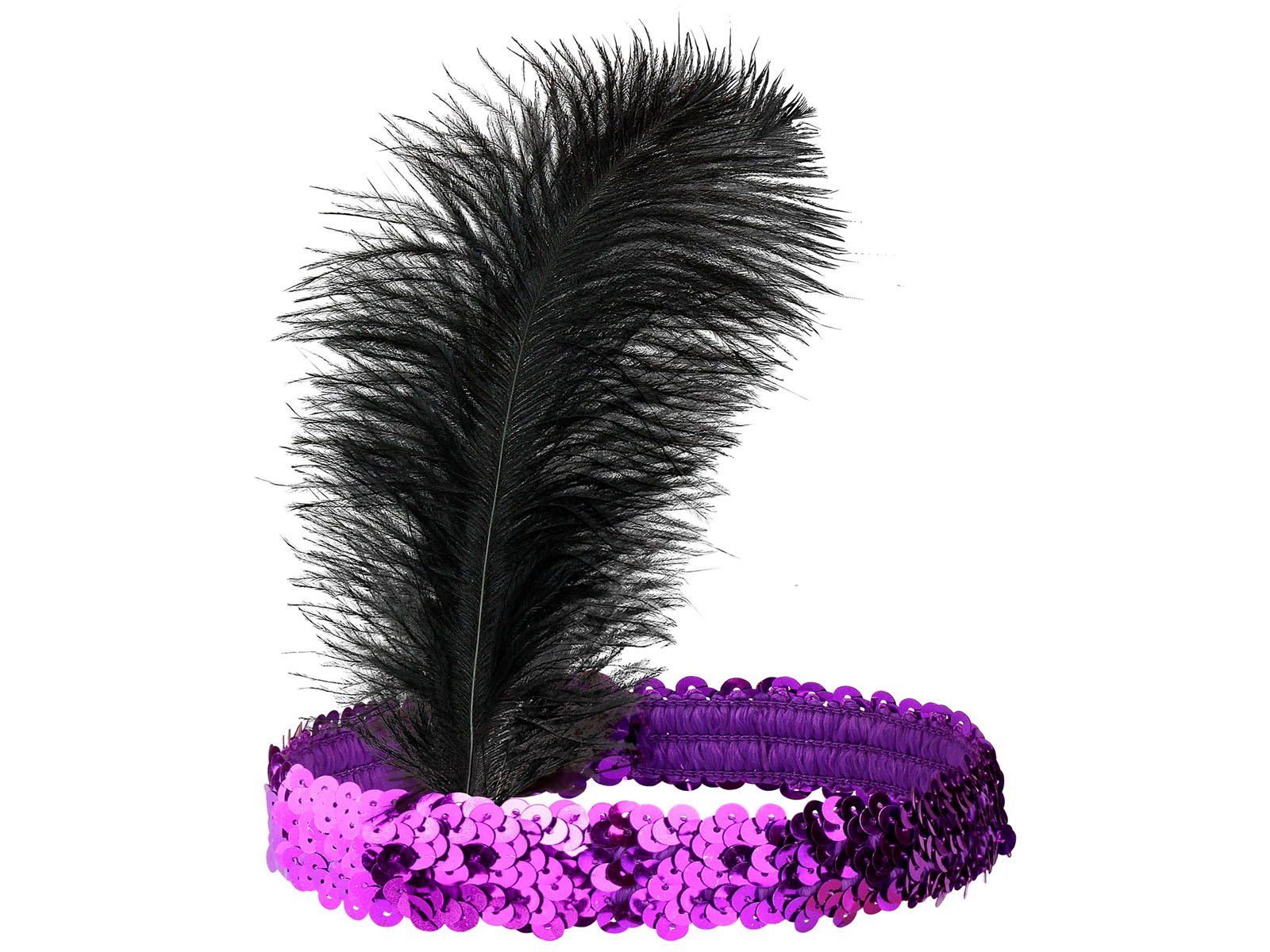 Csodáljon meg mindenkit a stílusos megjelenésével a közelgő farsangi és szilveszteri alkalmakra! Bemutatja fejpánt fekete tollal és lila flitterekkel 1920-as évekbeli stílus, hogy egyedi érzést adjon az öltözékének. Ideális tematikus partikhoz, egyszerre eleganciát és egy kis extravaganciát biztosítva.