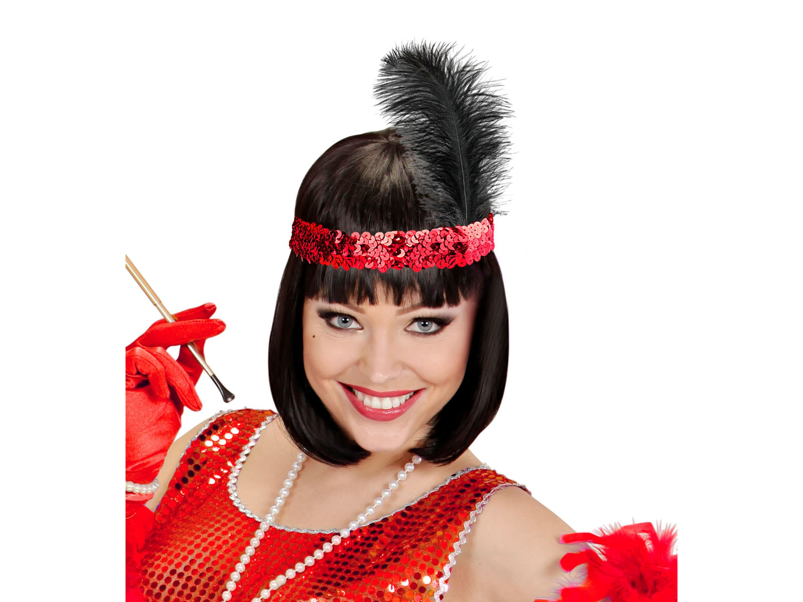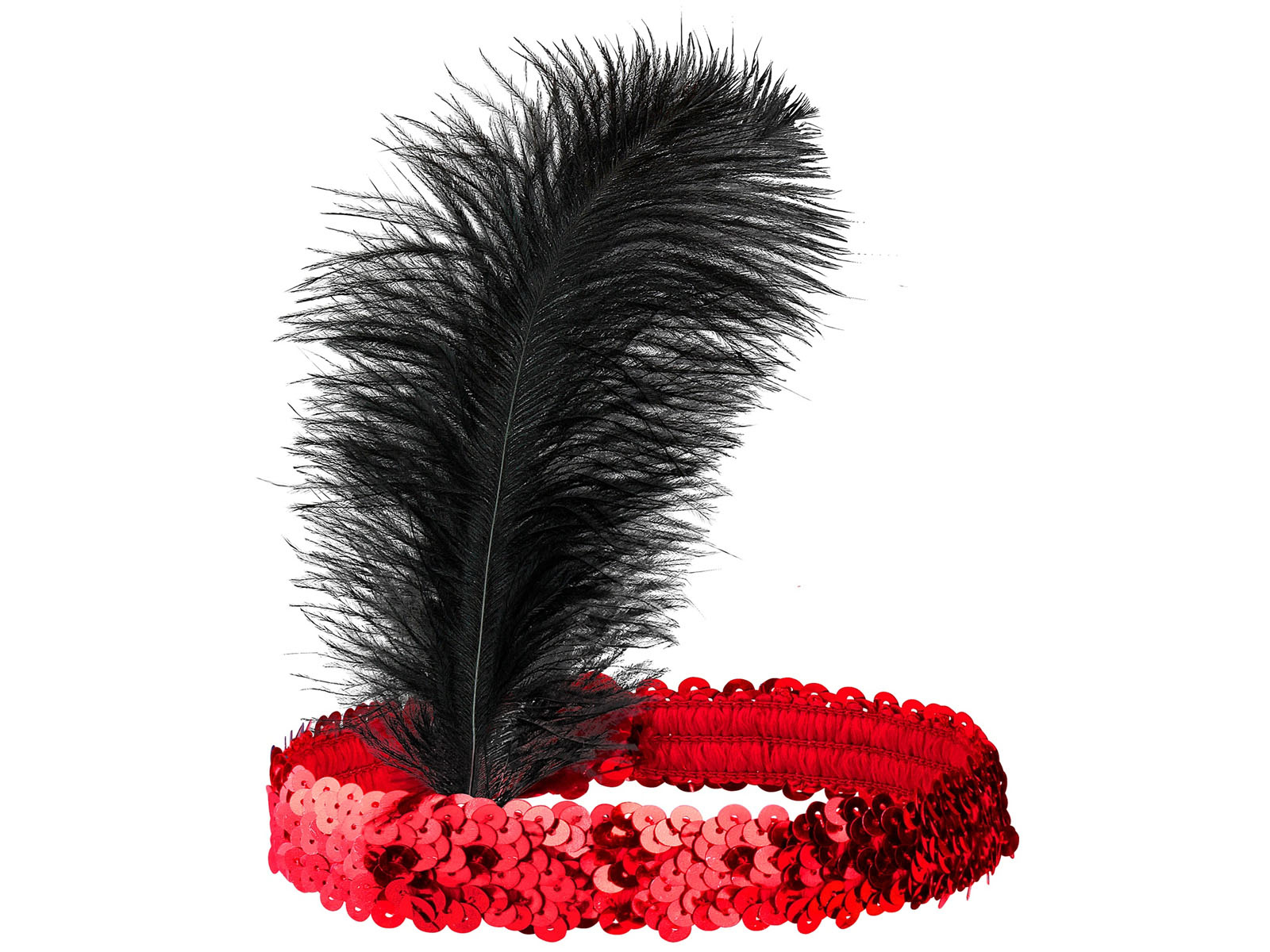 Retro piros fejpánt tollal és flitterekkel - 1 db.