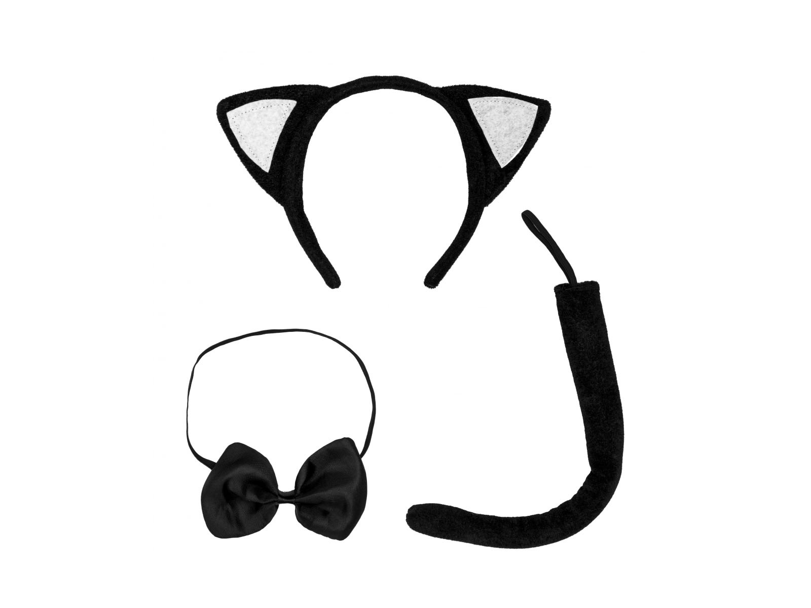 • Fejpánt, csokornyakkendő és cica farok szett fekete színben.