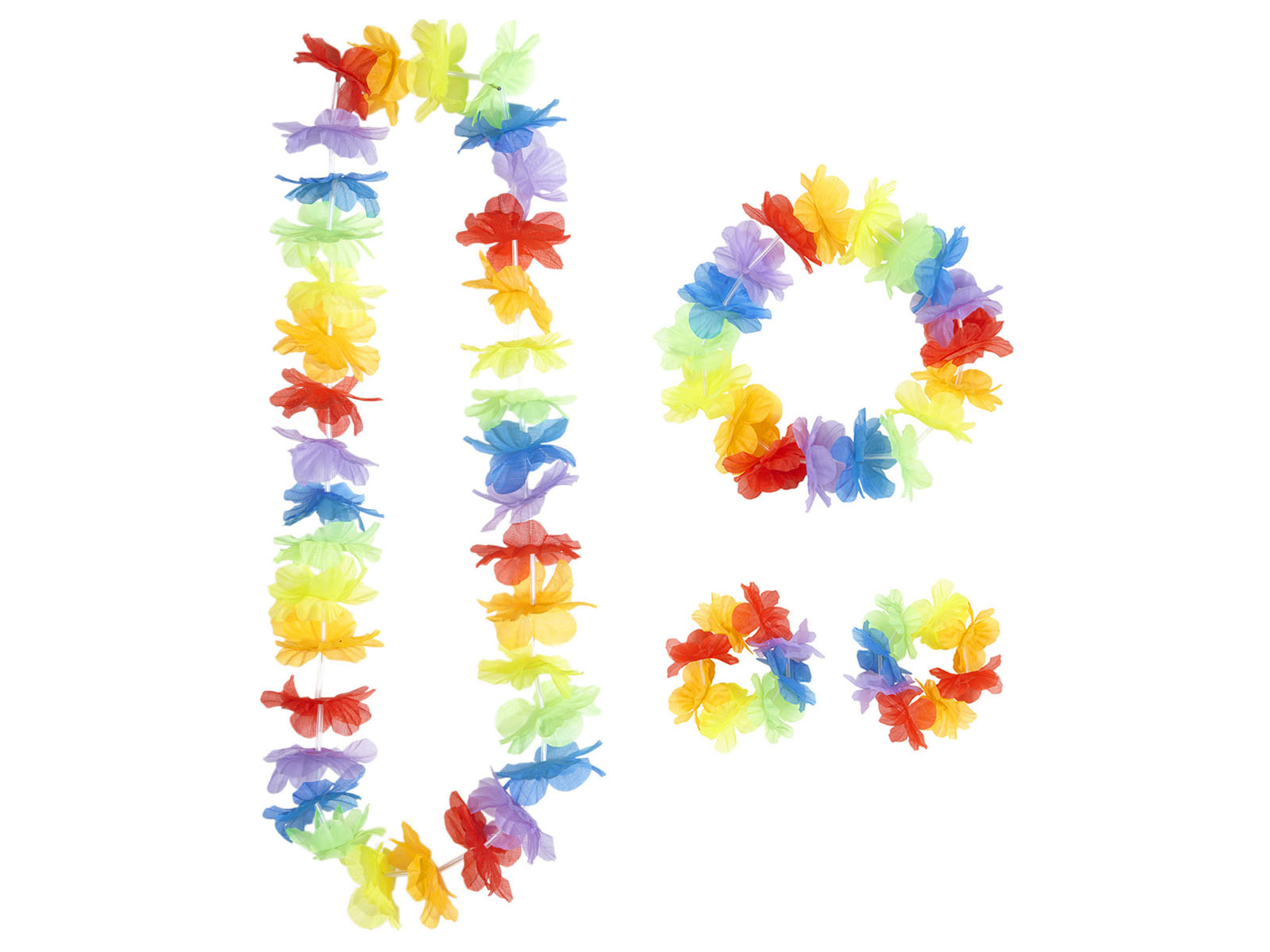Utazzon el egy napsütötte hawaii tengerpartra a mi színes hawaii szettünkkel. Ideális tematikus partikhoz, leány- és legénybúcsúkhoz vagy bármilyen olyan partihoz, ahol fontos az eredeti és szórakoztató öltözet. A készlet négy részből áll: