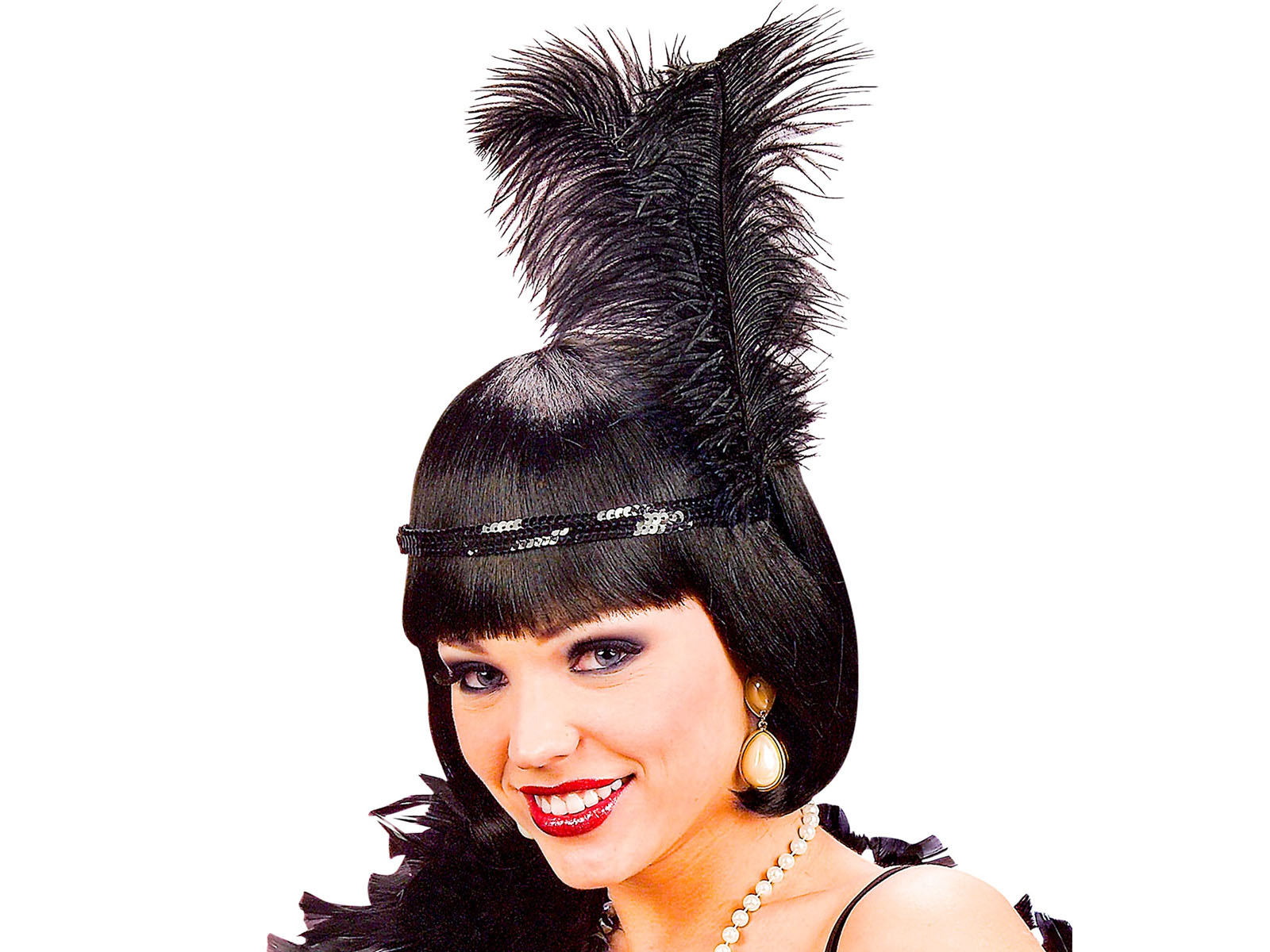• Charlestone fejpánt két tollal és fekete flitterekkel. Ideális szilveszterre és karneválokra egyaránt.