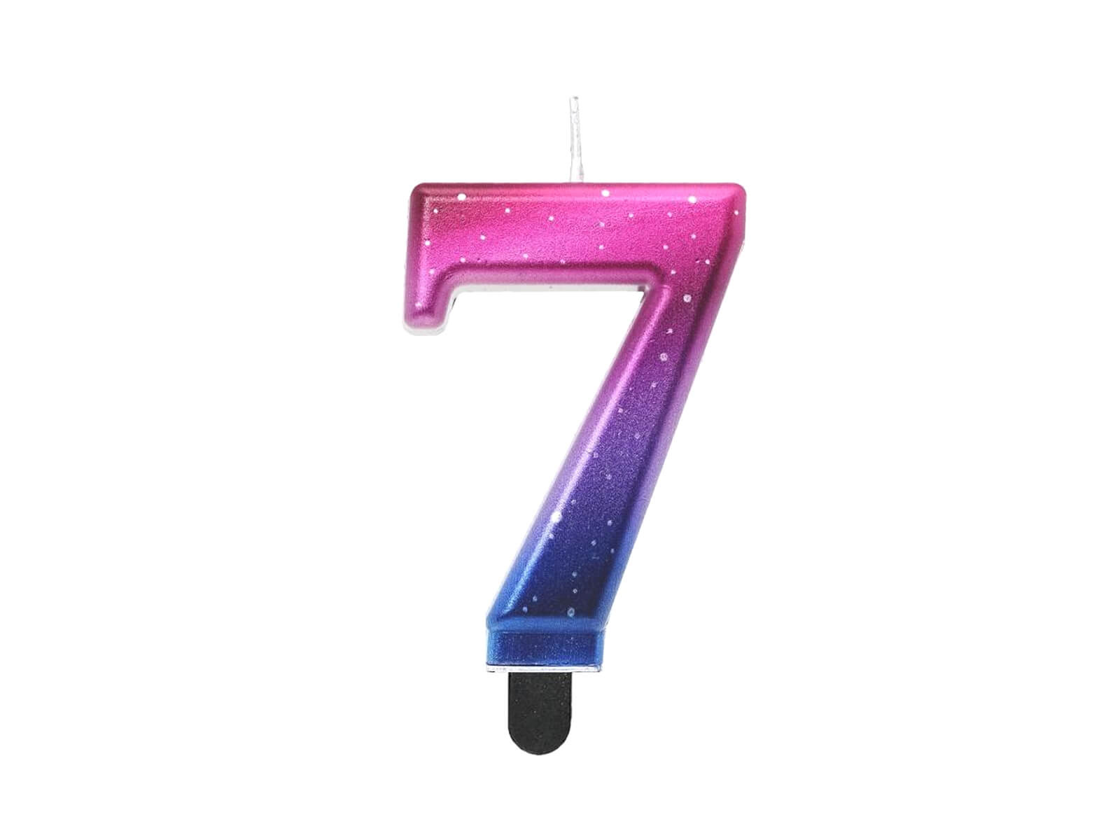 • Hetes szám 7 metál ombre gyertya lila és kék színben, fehér pöttyökkel.