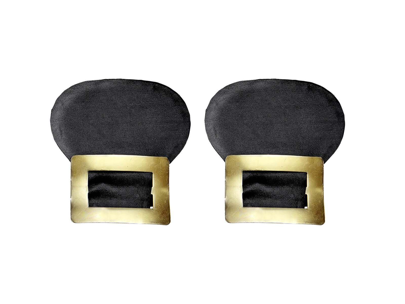 • Bőrszerű cipőborítás fekete színben, arany utánzatú csattal.