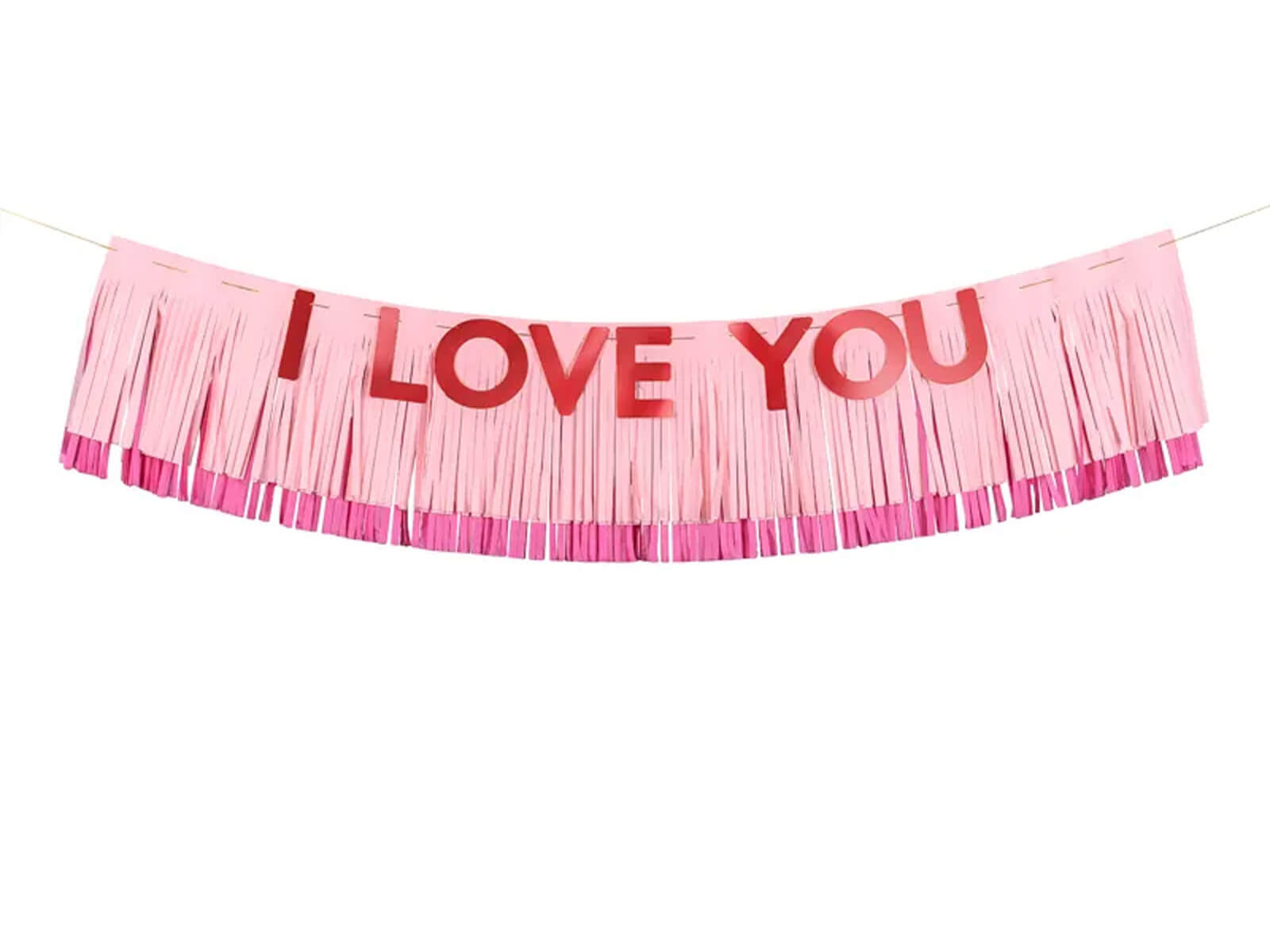 I Love You rózsaszín rojtos banner - 1.5m - 1 db.