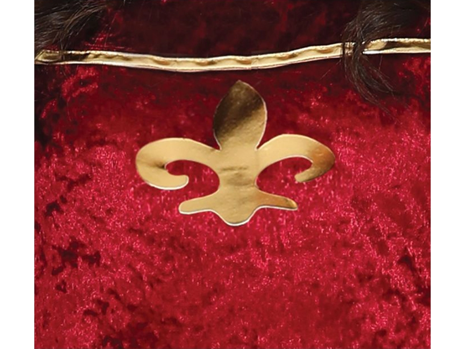 • Kiegészítő: hosszú bordó ruha arany elemekkel és kivágott ujjakkal.