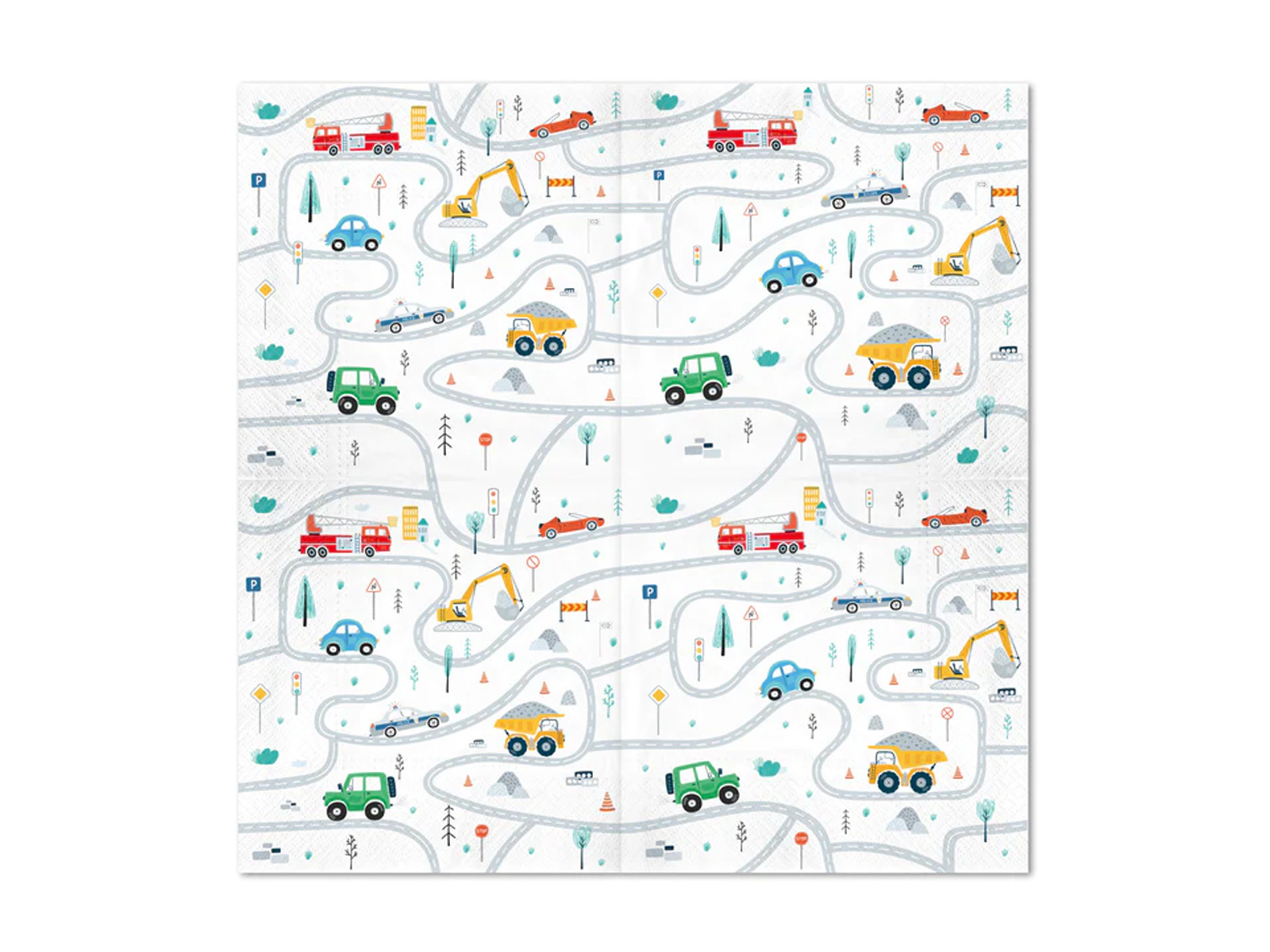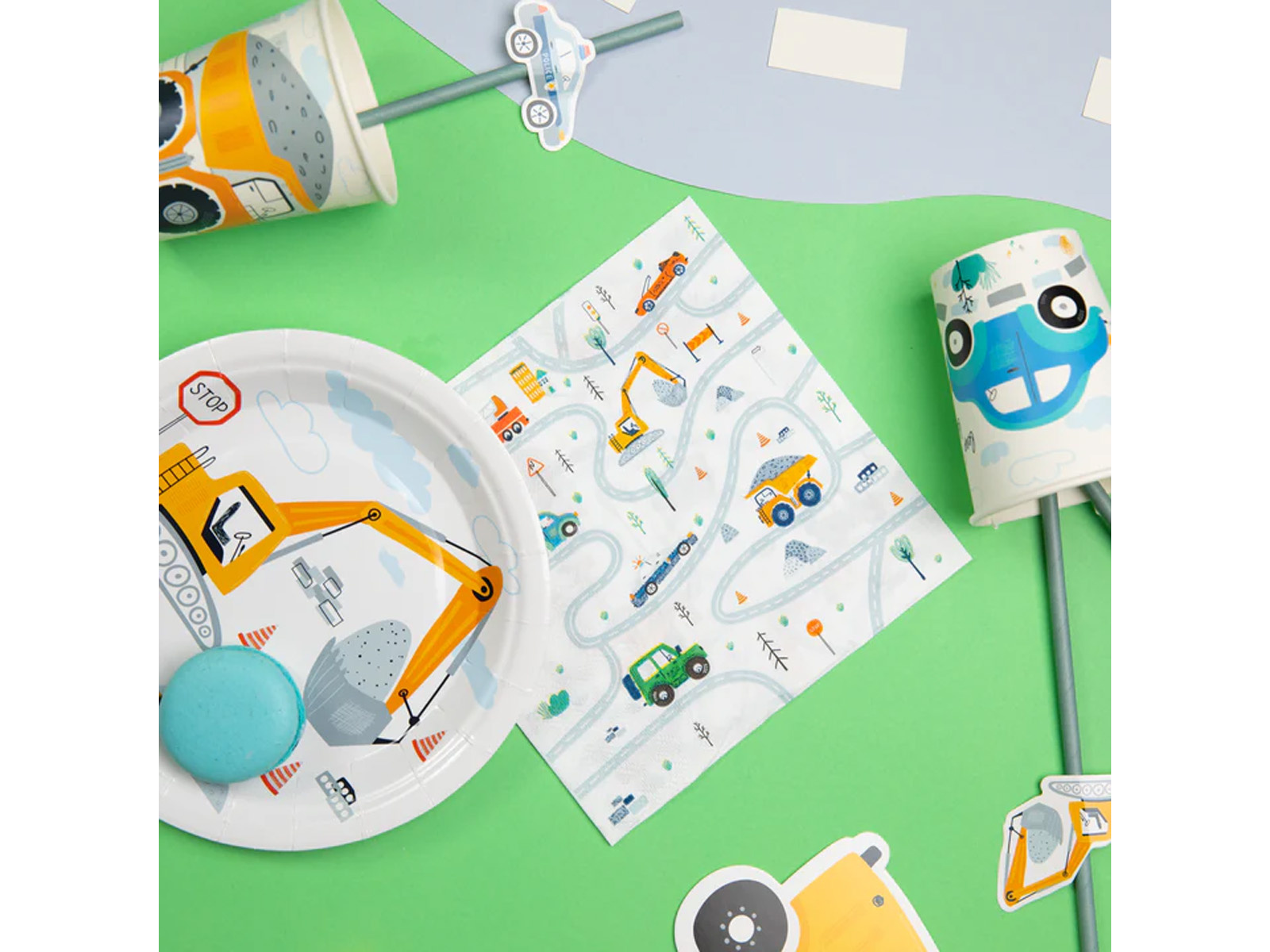 Tervezzen különleges születésnapi partit gyermeke számára színes szalvétáinkkal, amelyeken a következő motívumok szerepelnek autók! Minden szalvétát különböző járművek, például egy dzsip, egy púpos, egy tűzoltóautó, egy rendőrautó, egy dömper és egy kotróautó illusztrációi díszítenek, ami biztosan felkelti a kis autórajongók figyelmét.