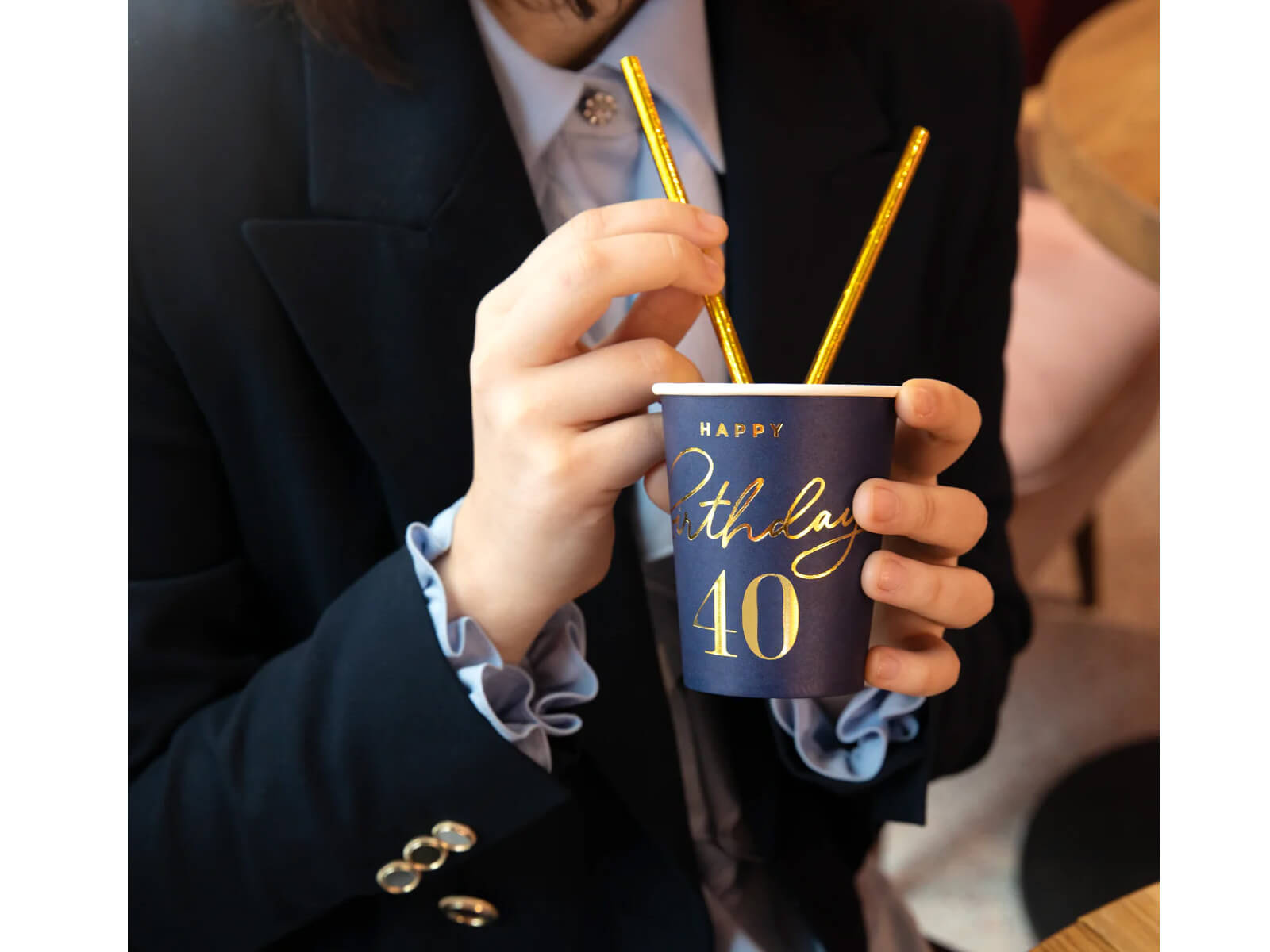 Negyvenedik születésnapi papírpoharak tengerészkék - 220 ml - 6 db.