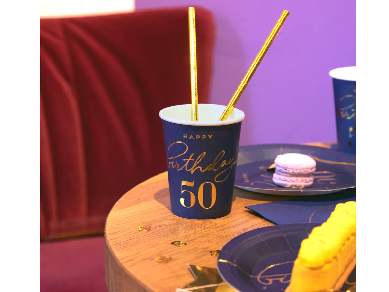 Ötvenedik születésnapi papírpoharak tengerészkék - 220 ml - 6 db.