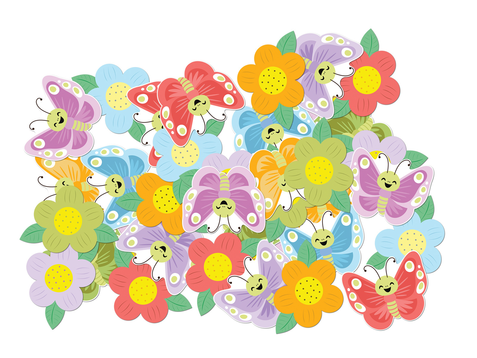 Tavaszi konfetti Virágok és pillangók - 36 db