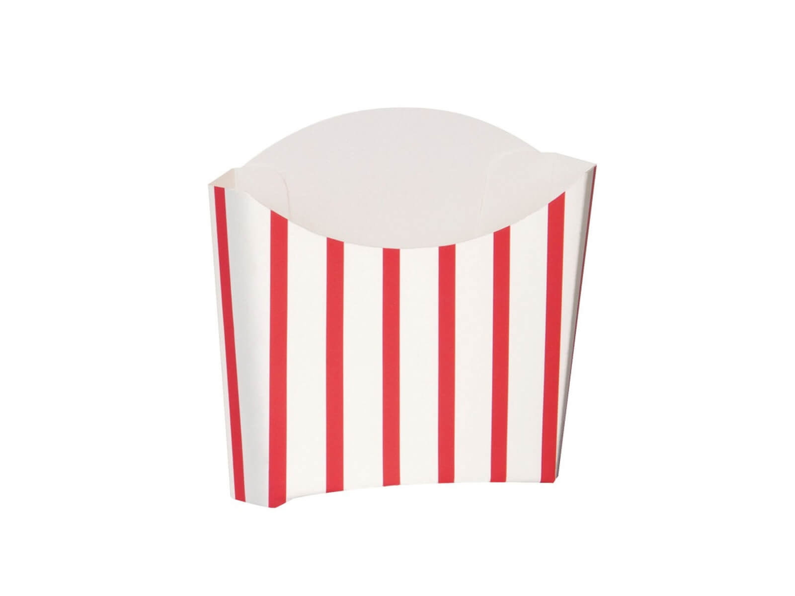 • Papírdobozok édességek, rágcsálnivalók, chipsek vagy chipsek számára piros és fehér csíkozással.