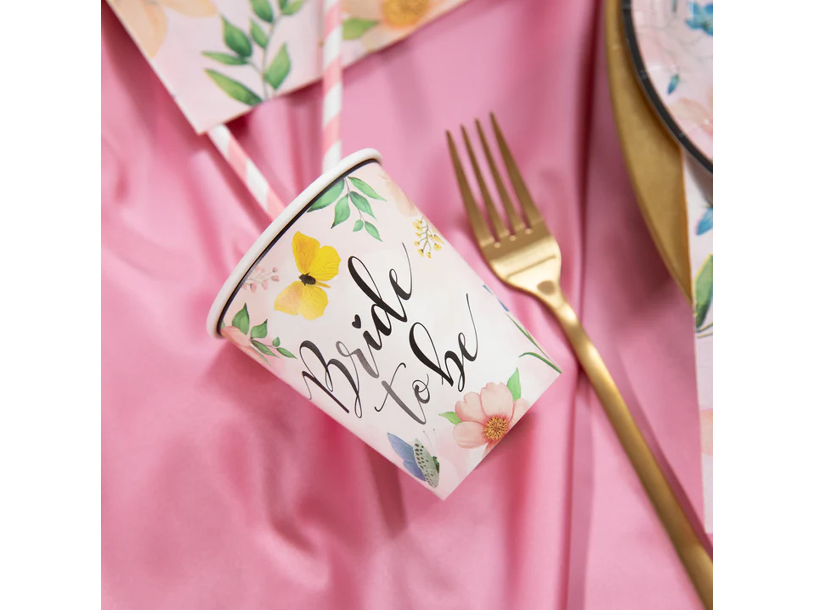 Menyasszonyi virágos papírpoharak - 220 ml - 6 db.