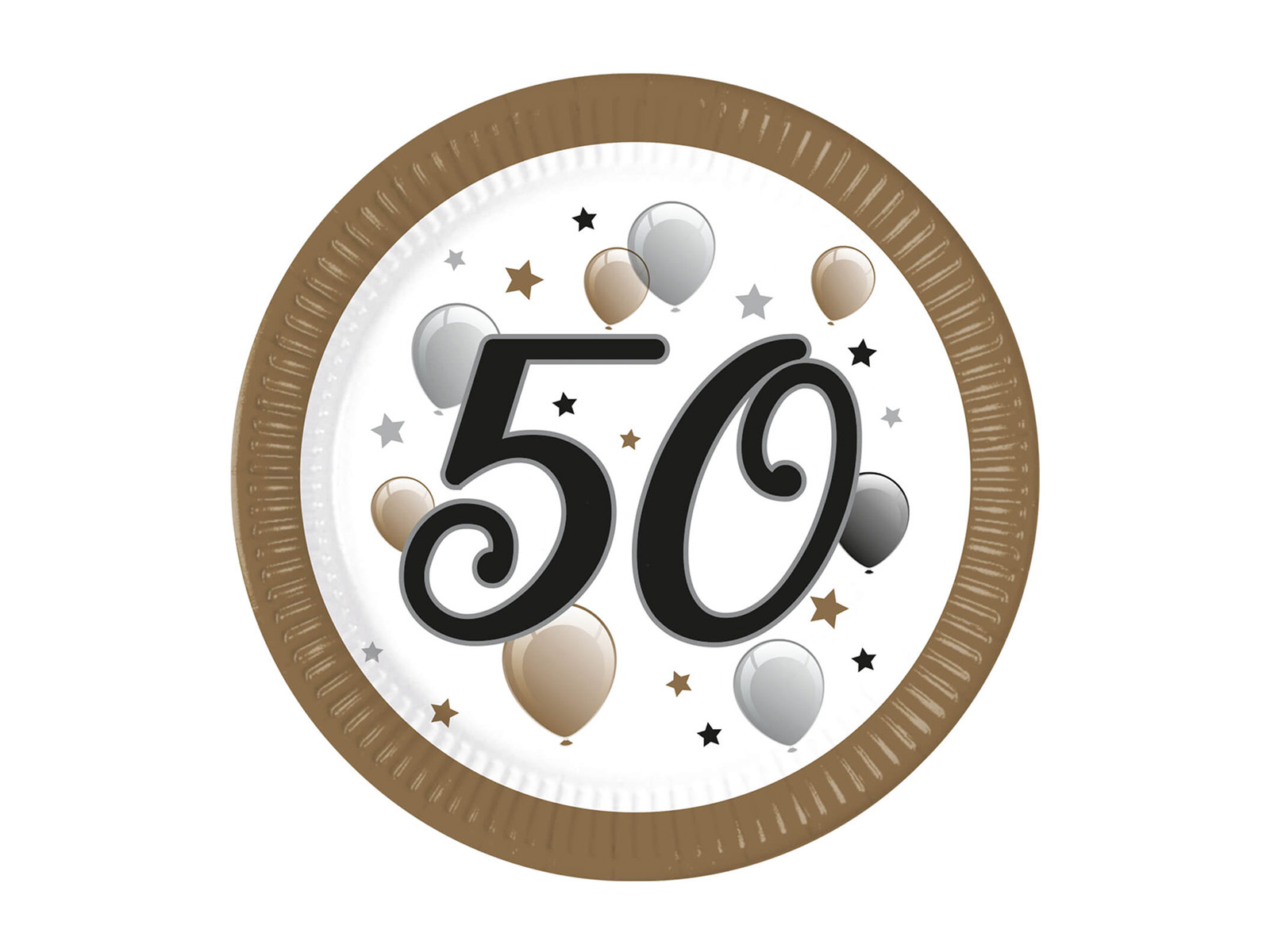 Papírtányérok ötvenedik születésnapra - 23 cm - 8 db.
