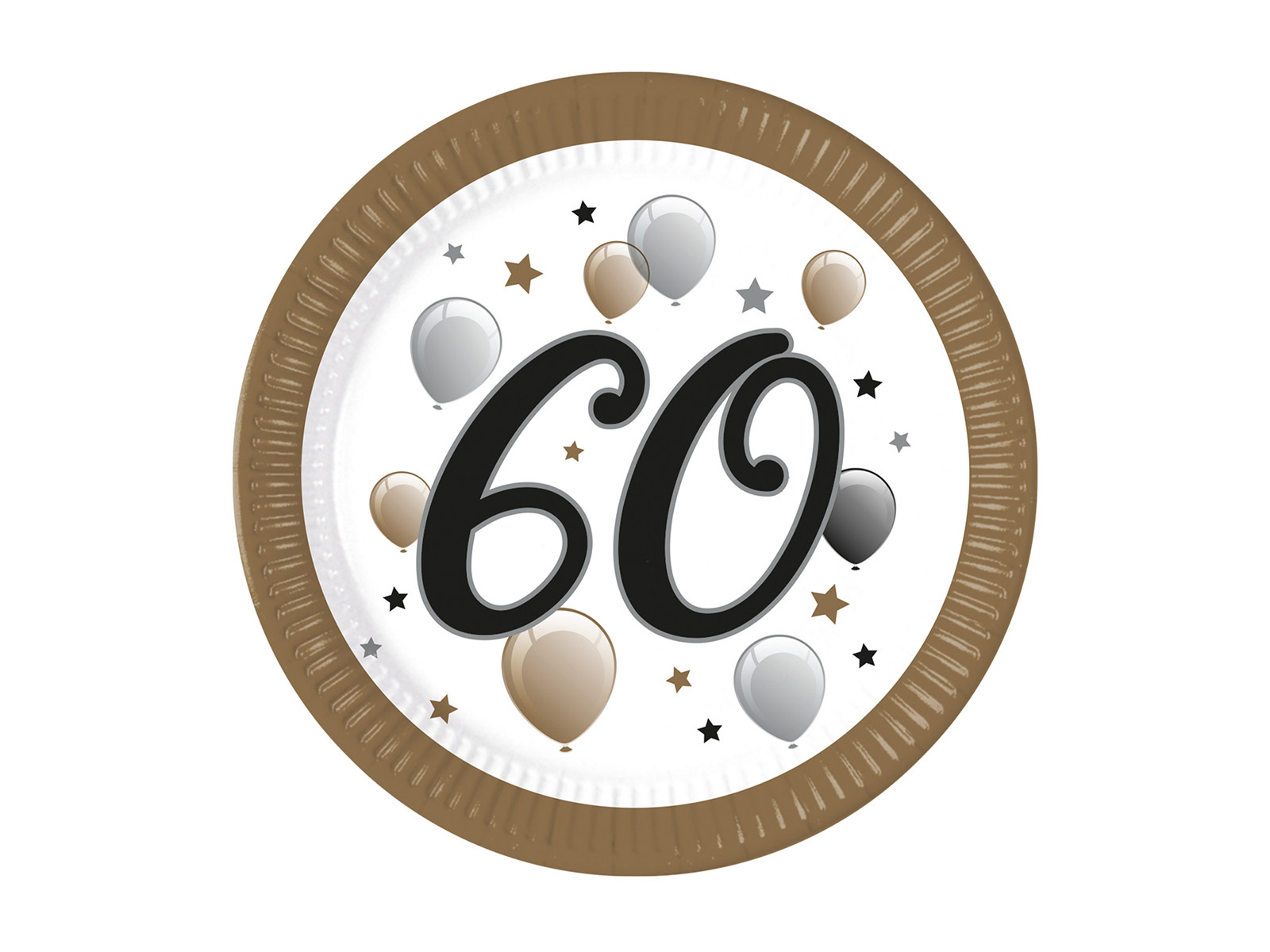 Papírtányérok 60. születésnapra - 23 cm - 8 db.