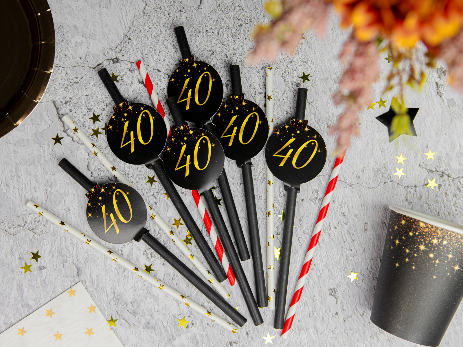 Szikrázó fekete szívószálak negyvenedik születésnapra - 6 db.