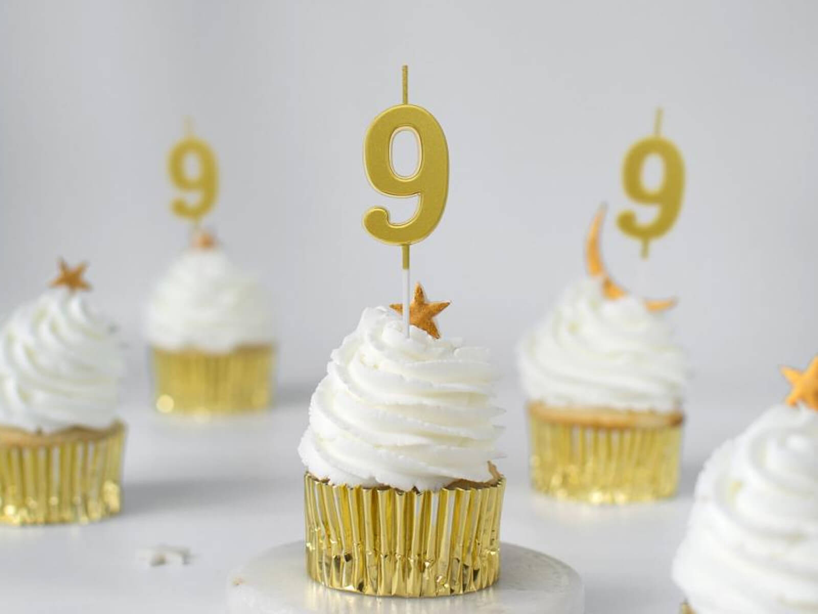 Fémszínű arany számgyertya - 9 - kilenc - kilenc
