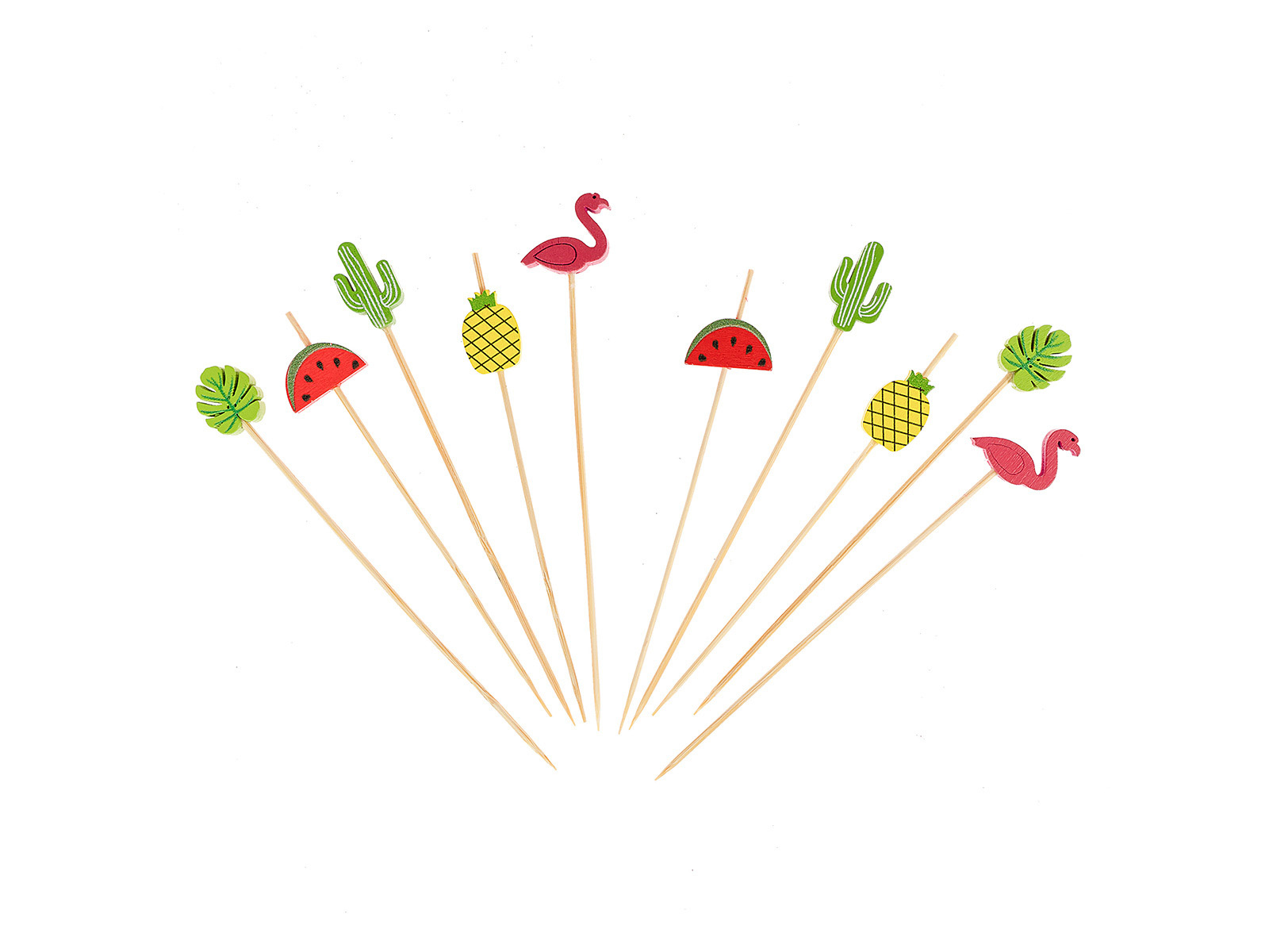• Hosszú természetes tűk, nyári motívumokkal díszített figurákban végződő pálcák. Ideális sós és édes előételekhez, burgerek, szendvicsek, gyümölcsök köreteként.