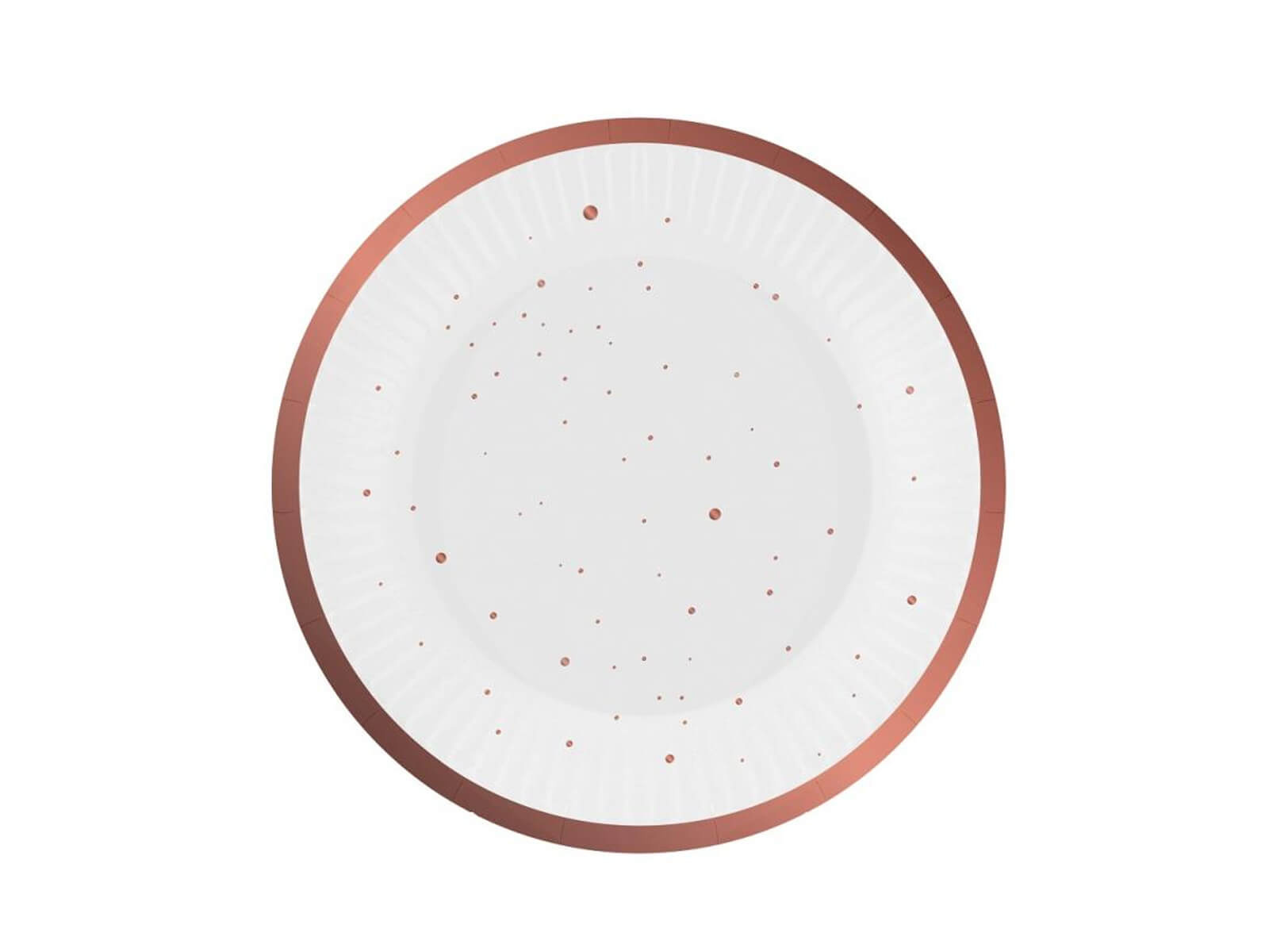 Fehér papírtányérok rózsaszín és arany pöttyökkel - 18 cm - 6 db.