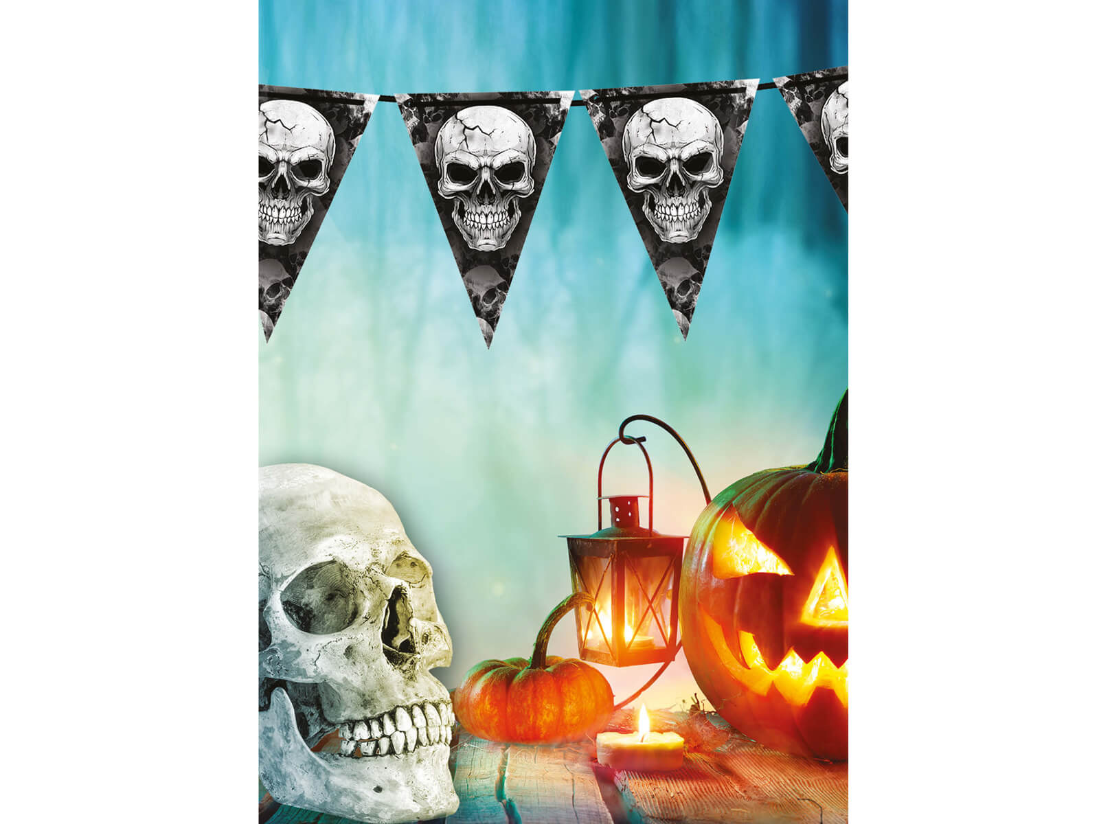 Ossza meg a Halloween félelmet a koponya zászlós bannerünkkel, és lepje meg vendégeit egy felejthetetlen dekorációval!