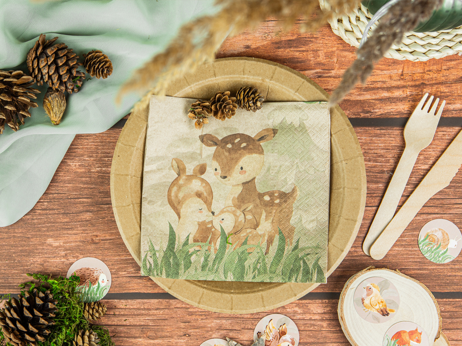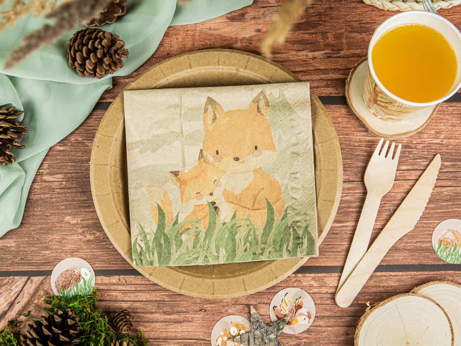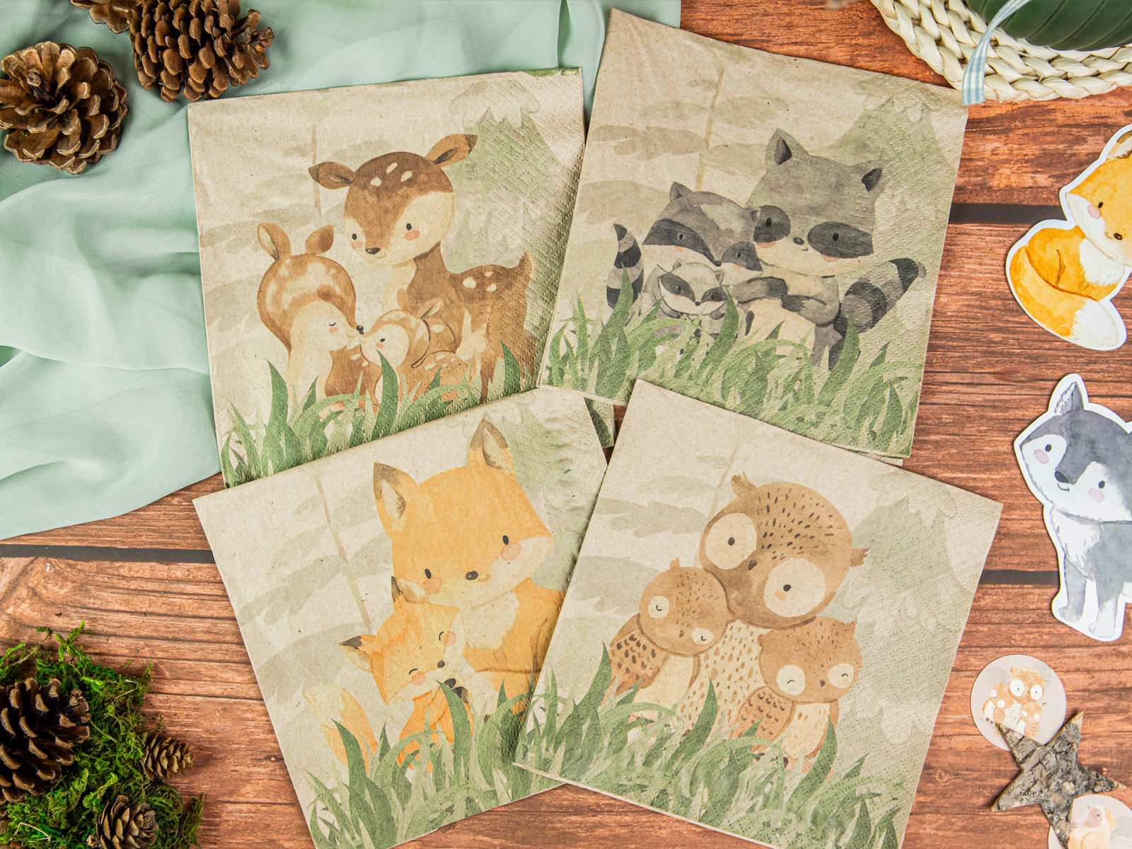 Nasze serwetki, zdobione motywami leśnych zwierzątek, dodadzą magii każdej urodzinowej imprezie, niezależnie od tego czy dbasz o szczegóły tematyczne, czy po prostu chcesz sprawić, że dzień Twojego dziecka będzie jeszcze bardziej wyjątkowy. Są one świetnym wyborem zarówno dla chłopców, jak i dziewcząt, dzięki neutralnym i urokliwym wzorom.