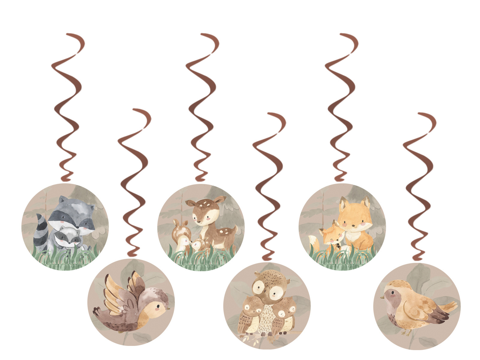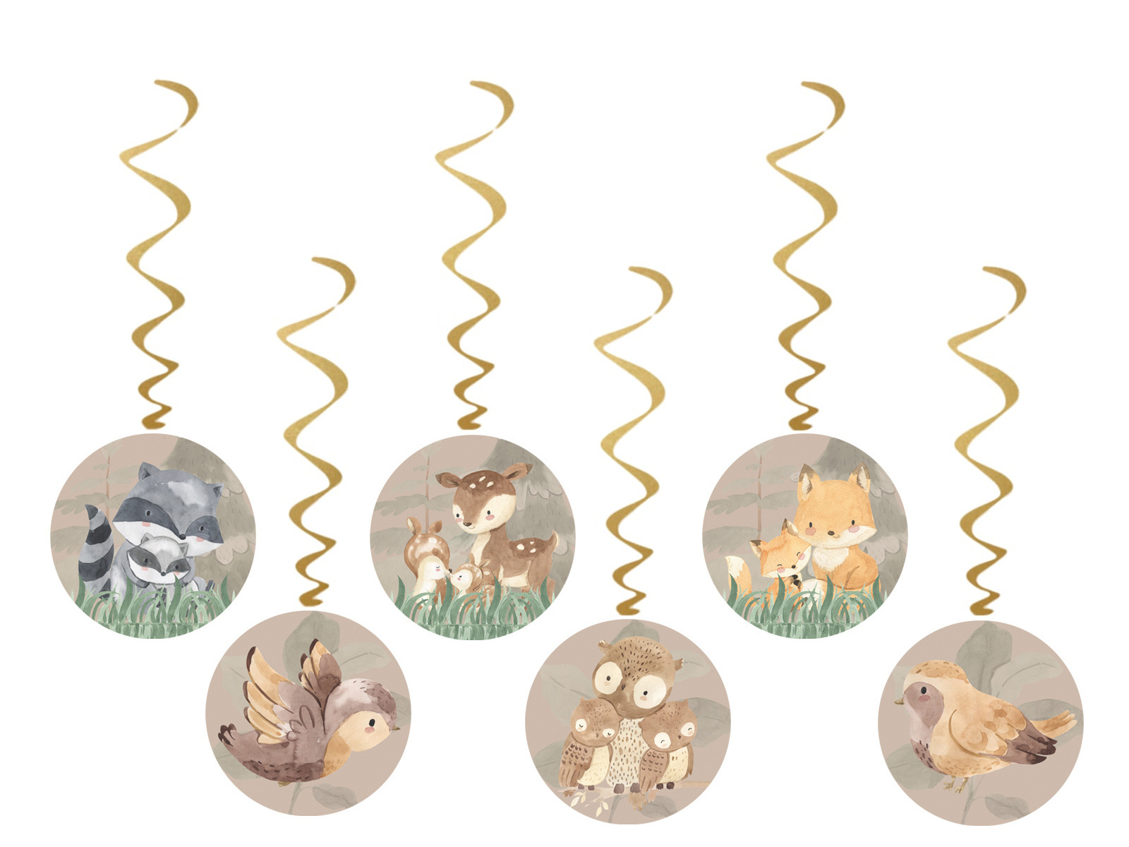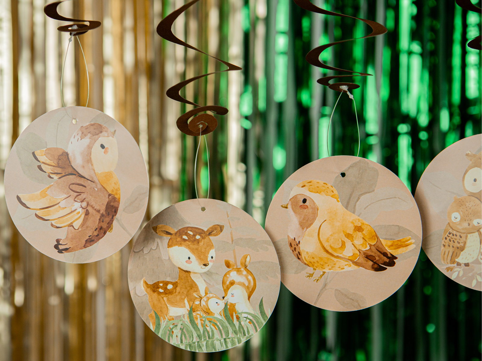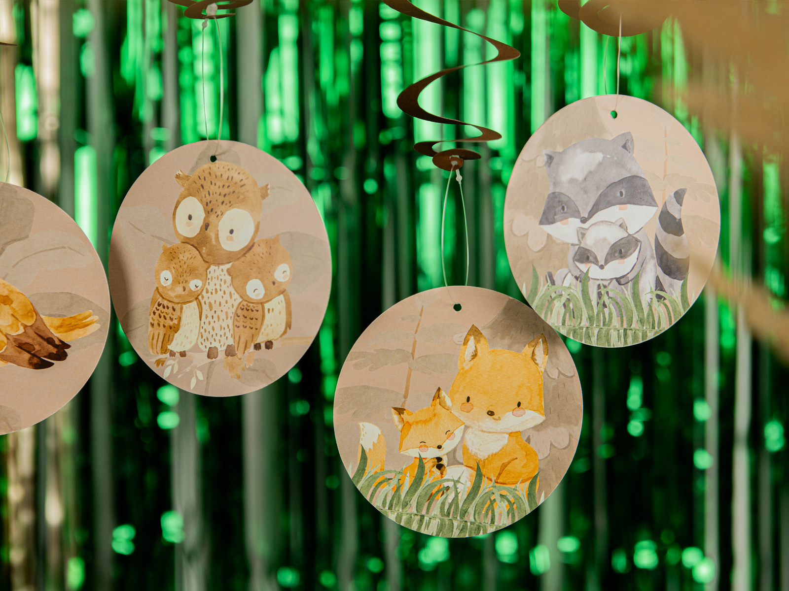 Függő születésnapi dekoráció Erdei állatok - 6 db.