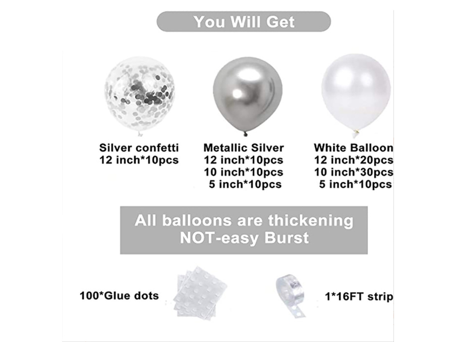 - átlátszó ezüst konfettivel 30 cm (10 db).),