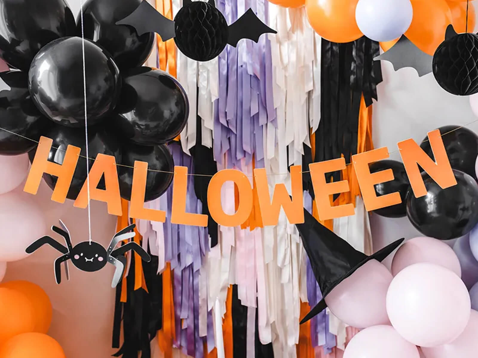 • Papírfüzér Halloween felirattal narancssárga színben.