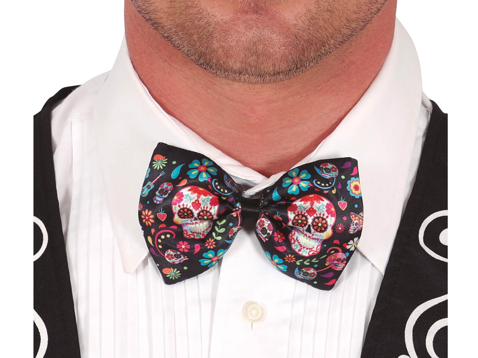 • Csokornyakkendő színes koponyákkal, tökéletes kiegészítője a Halloween jelmezednek.