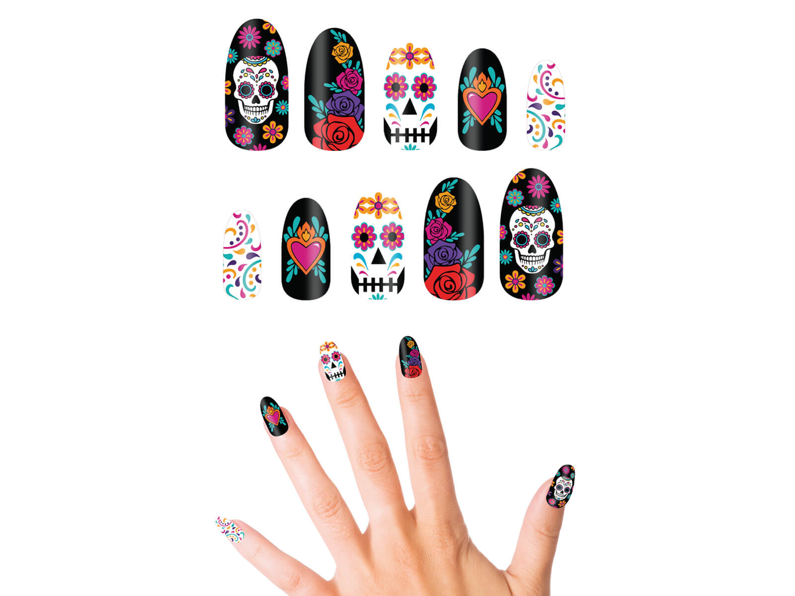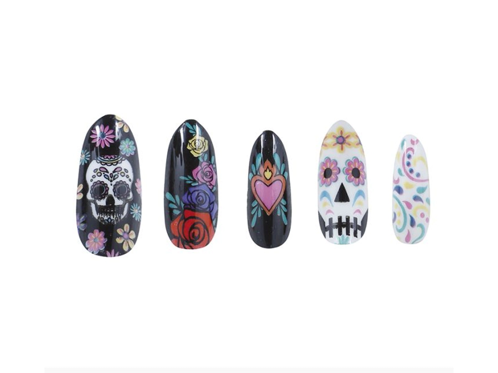 Ezek a körmök a halloweeni jelmezed feldobására készültek, egyszerre kísértetiesek és stílusosak. Tökéletesek egy mexikói halottak napja ihlette jelmez kiegészítésére, de elég sokoldalúak ahhoz, hogy más jelmezekhez és tematikus partikhoz is illeszkedjenek.