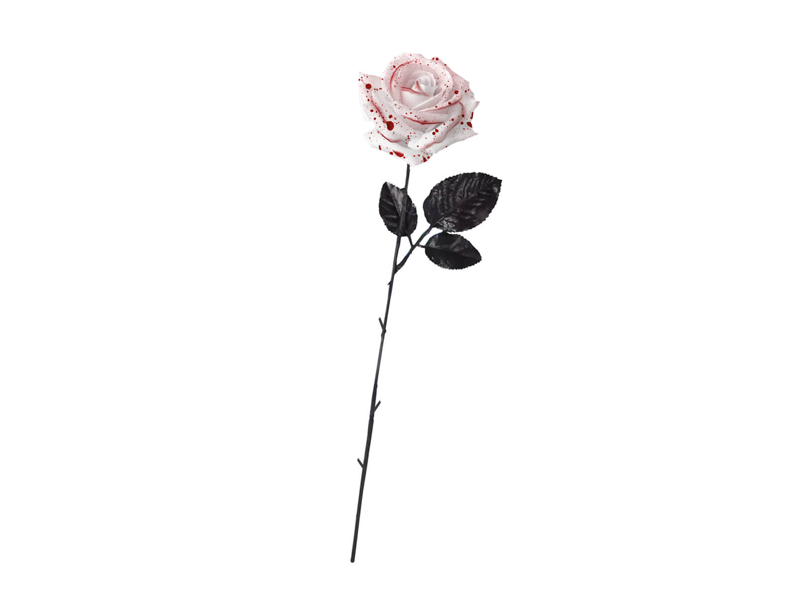 Fedezzen fel egy szokatlan dekorációt, amely kísérteties érintést ad a halloweeni dekorációhoz! Fehér rózsa vérfoltokkal ideális dekorációs elem, amely minden vendég figyelmét felkelti. 42 cm-es hossza lehetővé teszi, hogy egy asztal központi dekorációs elemeként és egy nagyobb, bonyolultan megtervezett installáció részeként is használható legyen.