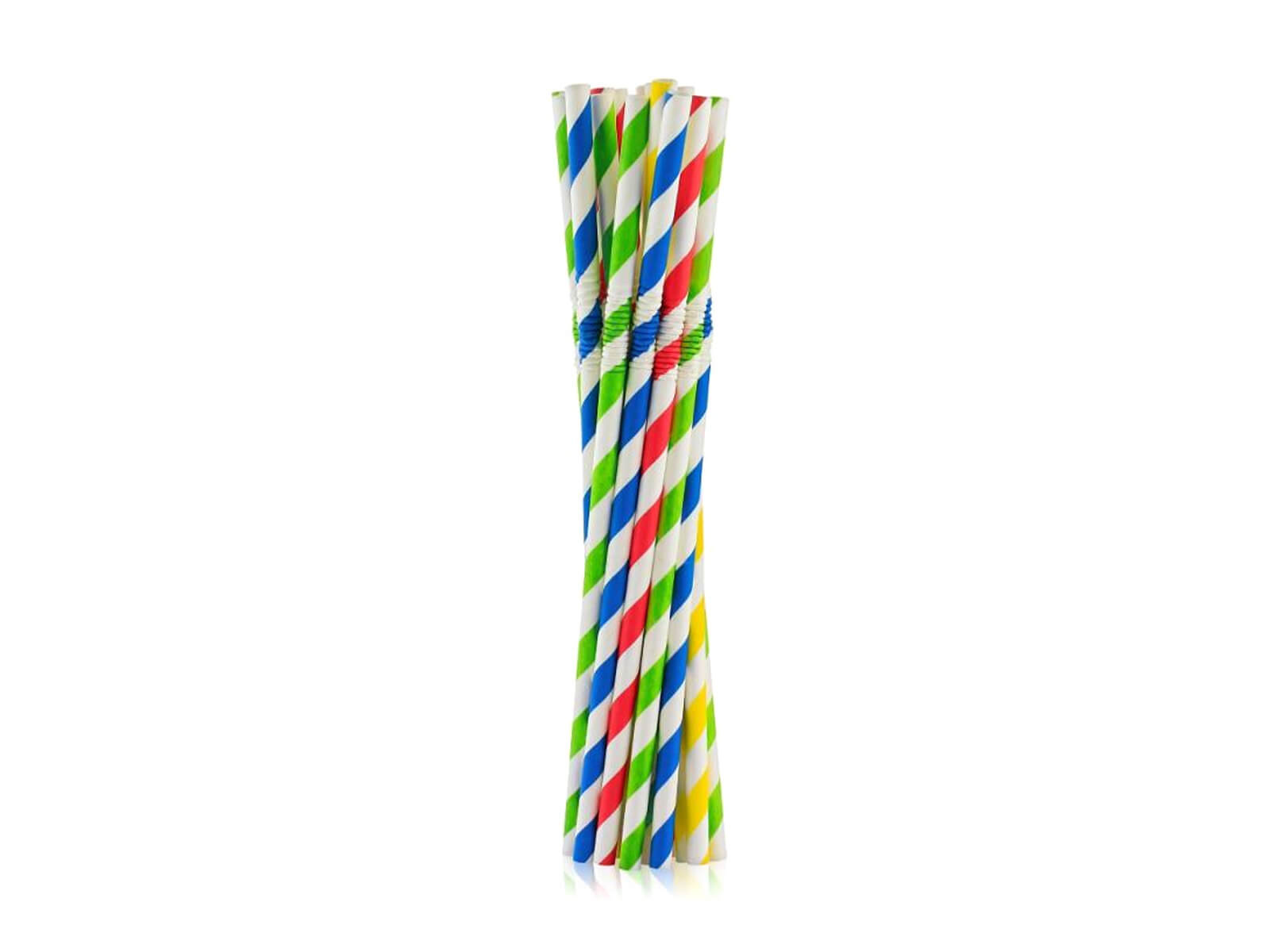 Csíkos papír szívószálak vegyes színekben - 100 db.