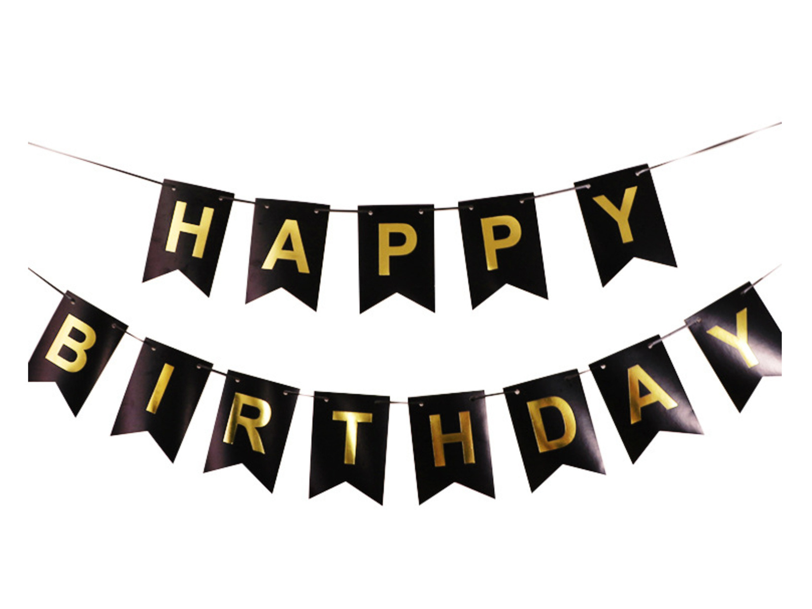 Fekete zászlós banner Happy Birthday felirattal - 190 cm - 1 db.