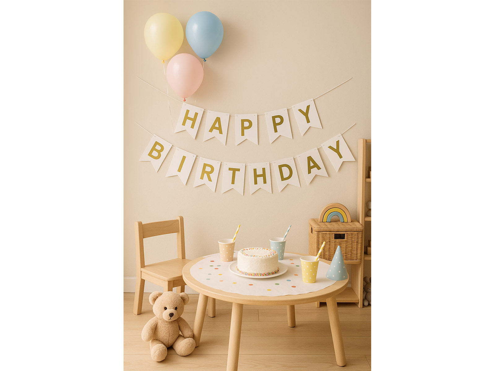 Fehér zászló banner Happy Birthday felirattal - 190 cm - 1 db.