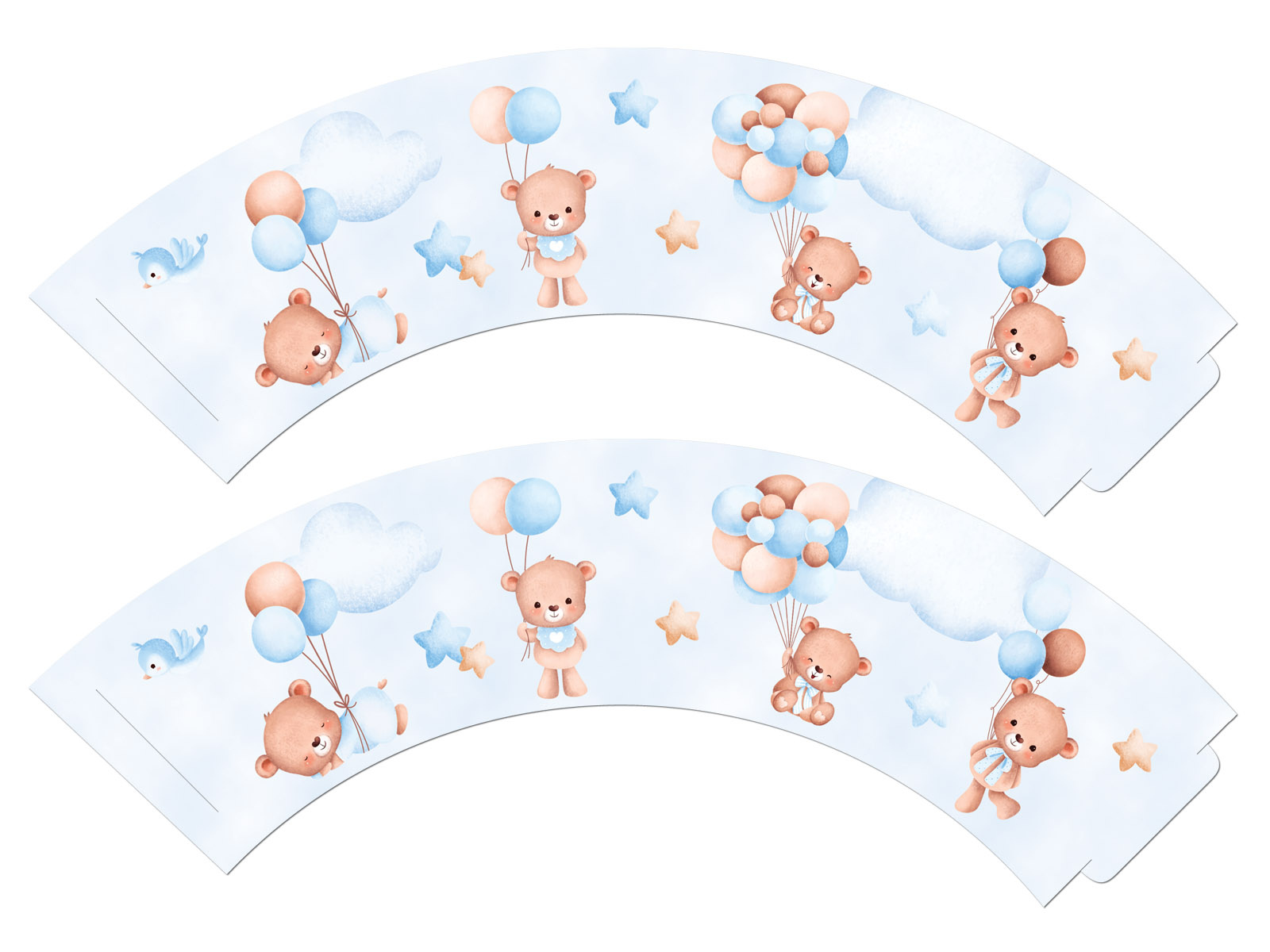 Cupcake cupcakes kék mackók lufival - 6 db.