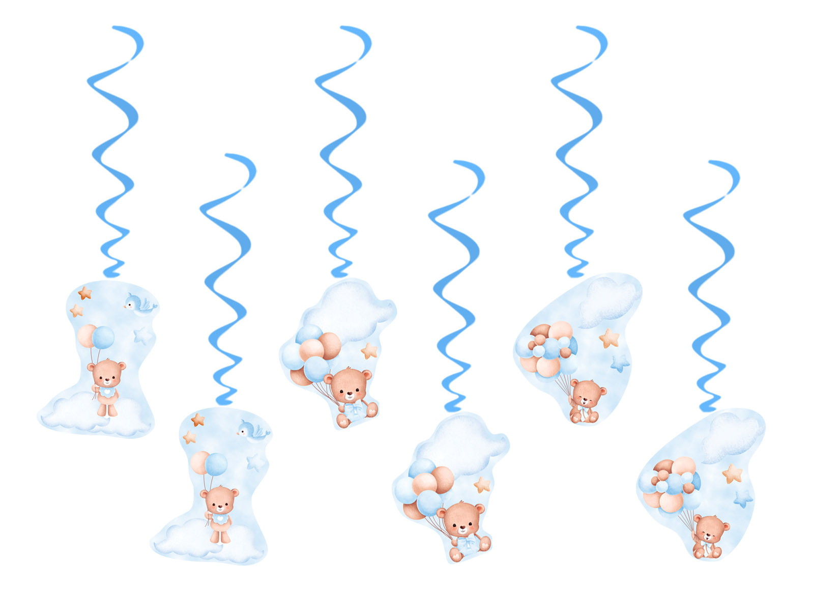 Akasztós dekoráció kék mackók lufikkal - 6 db.