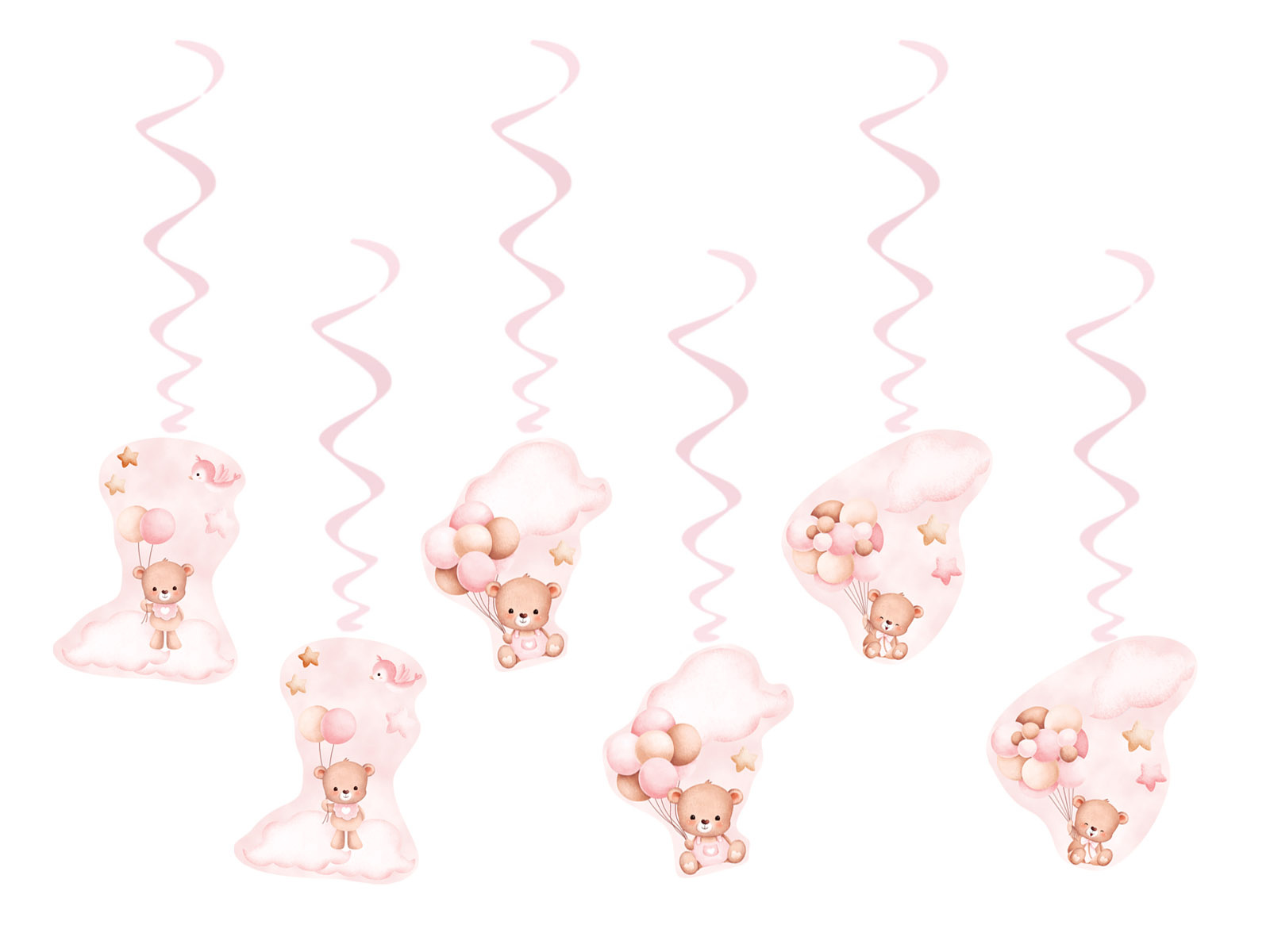 Akasztós dekoráció rózsaszín mackók lufikkal - 6 db.