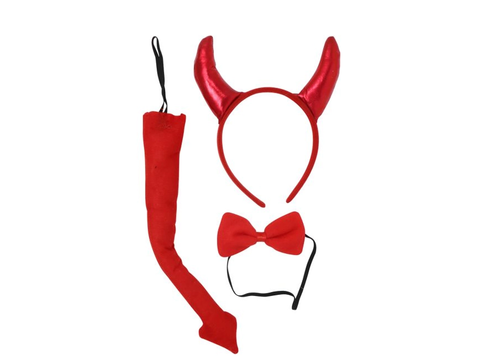 • Komplett: piros fejpánt szarvakkal, csokornyakkendővel és farokkal.