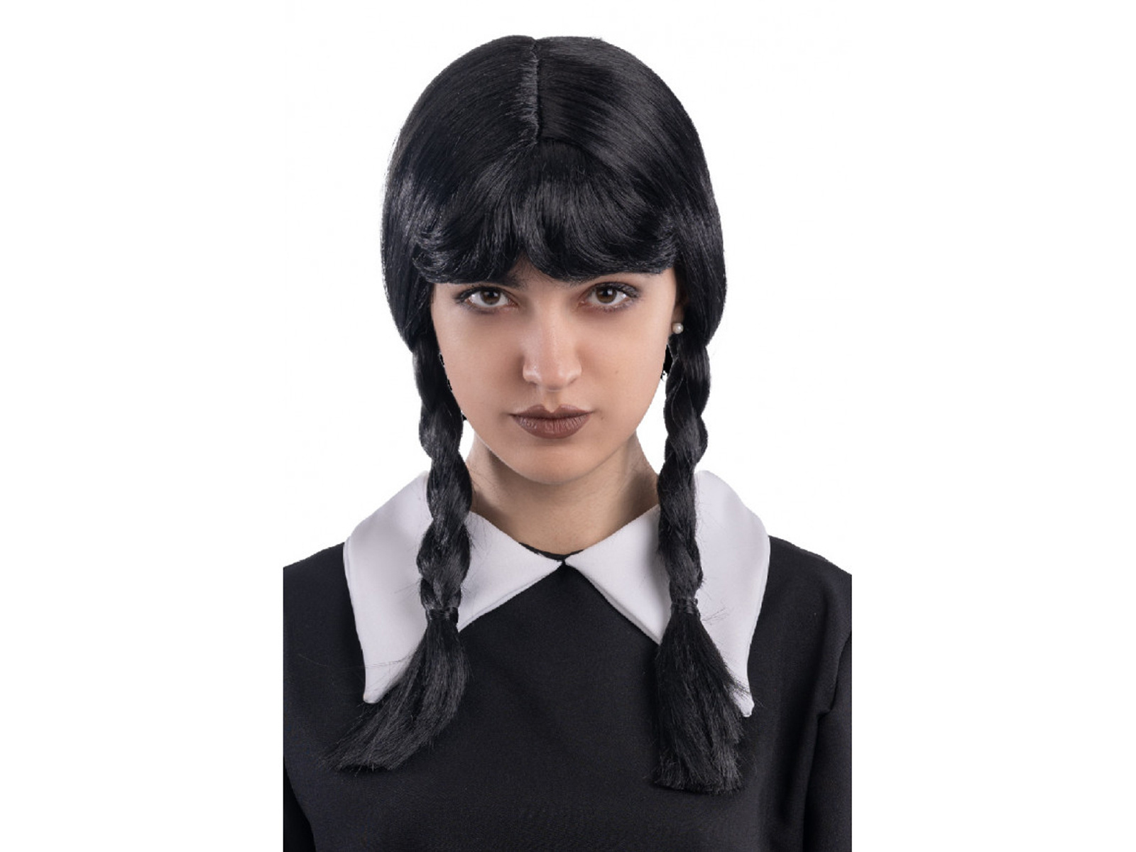 Változz át az Addams család ikonikus Wednesday Addams karakterévé ezzel a stílusos fekete fonatos és rojtos parókával. Kiváló minőségű szintetikus szálakból készült a természetes megjelenés és a sok alkalomra való tartósság érdekében. Ideális Halloween, farsang, valamint tematikus partikhoz vagy Szent András partikhoz. Univerzális méretének köszönhetően a paróka tökéletesen illeszkedik a felnőtt viselője fejére, így egész éjszaka kényelmes viseletet biztosít.