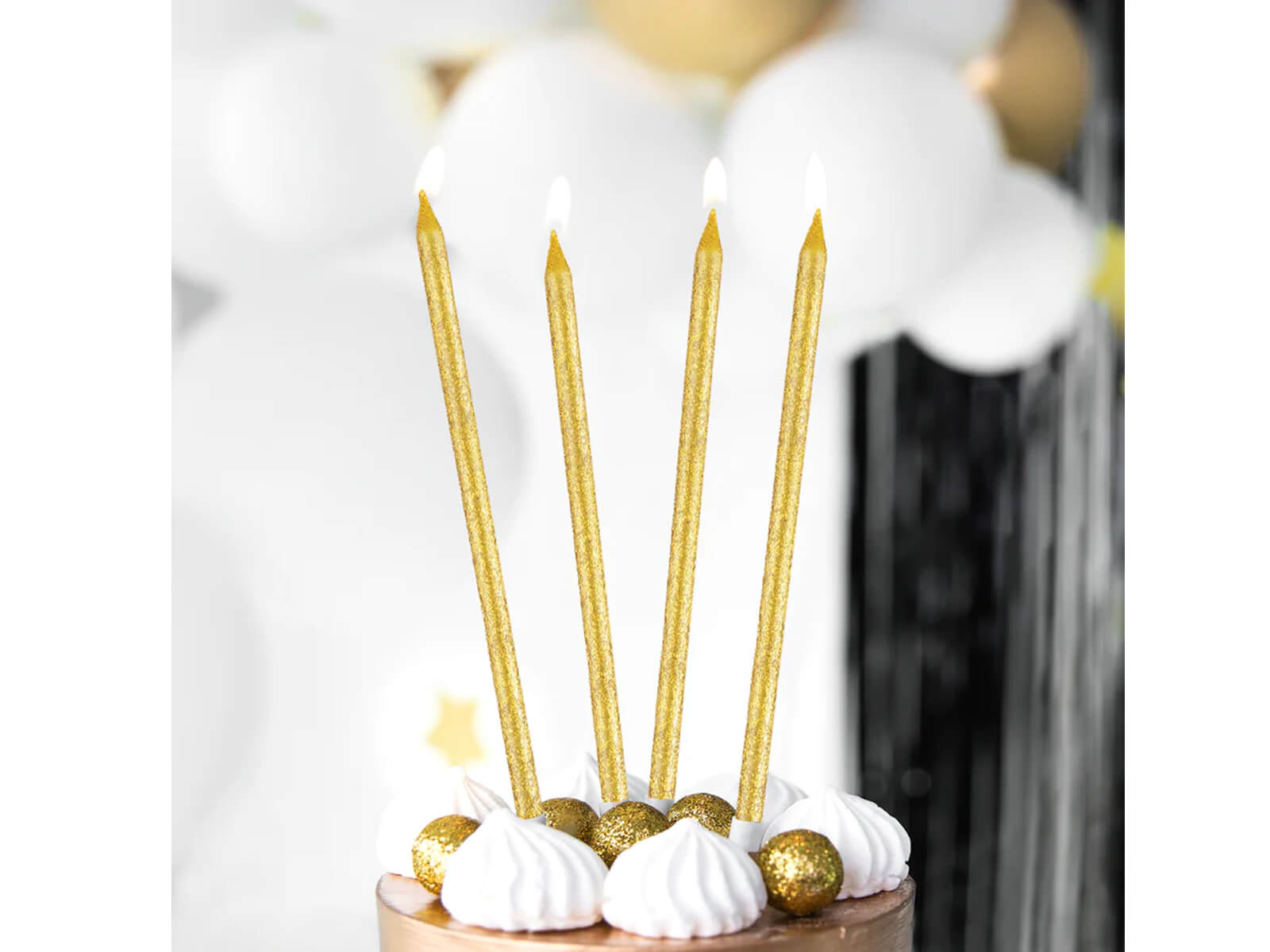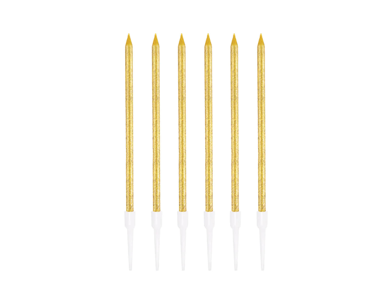 Arany születésnapi gyertyák csillámmal - 13,5 cm - 6 db.
