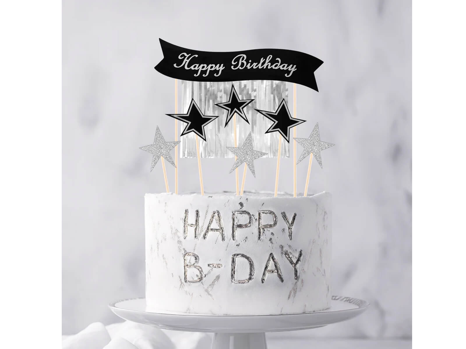 Boldog születésnapot tortadísz ezüst szedőkkel - 7 db.