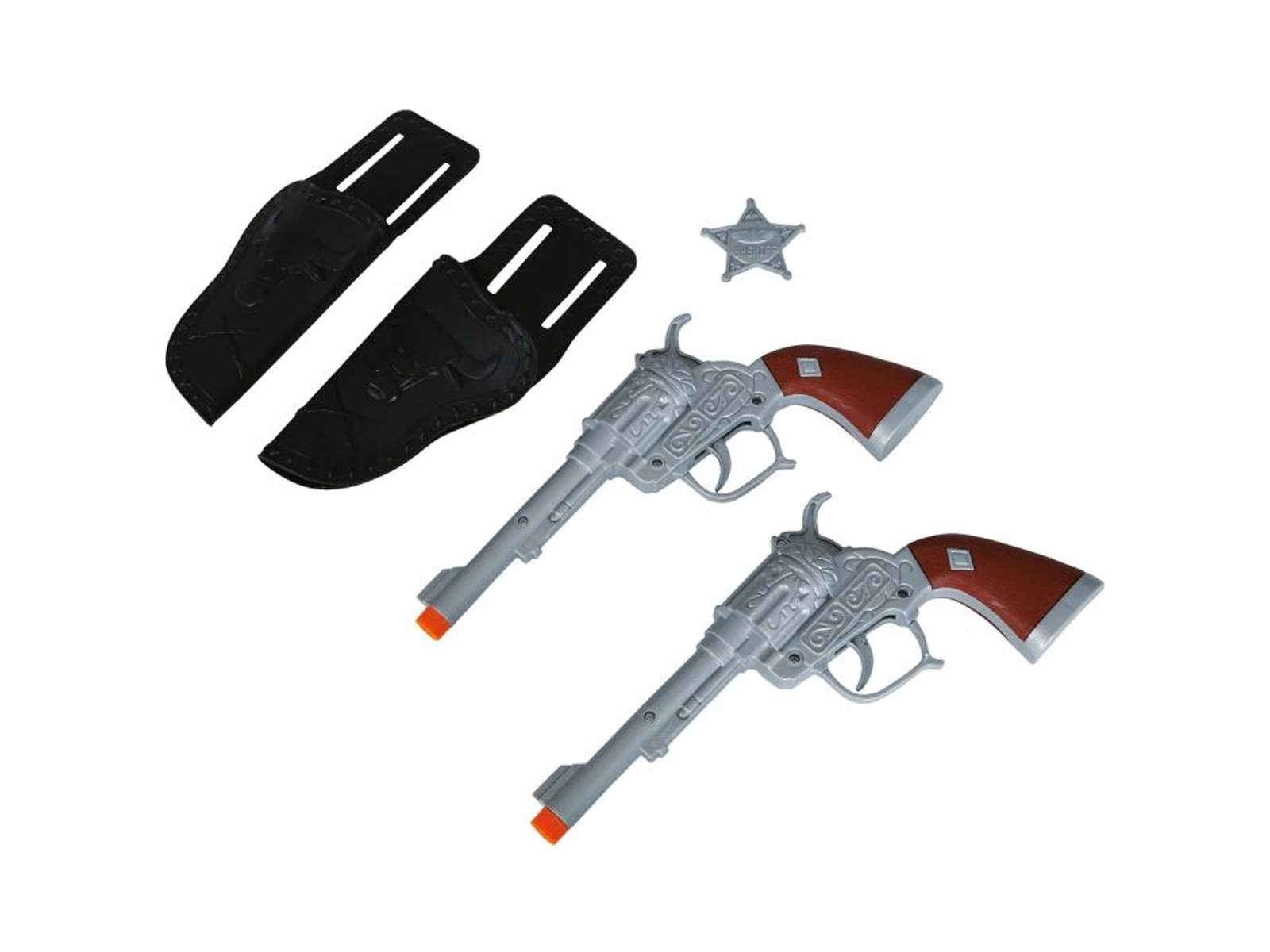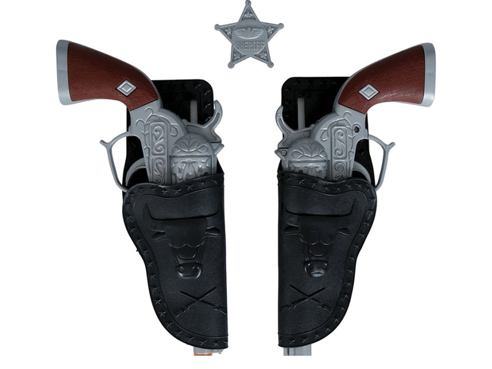 Revolverhosszúságok: Az övben található revolverek mindegyike 24 cm hosszú, ami növeli a valósághű megjelenést. Biztonságos anyagokból készülnek, tökéletesen reprodukálják a valódi modelleket.
