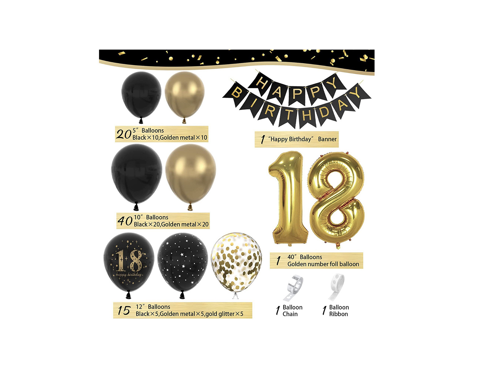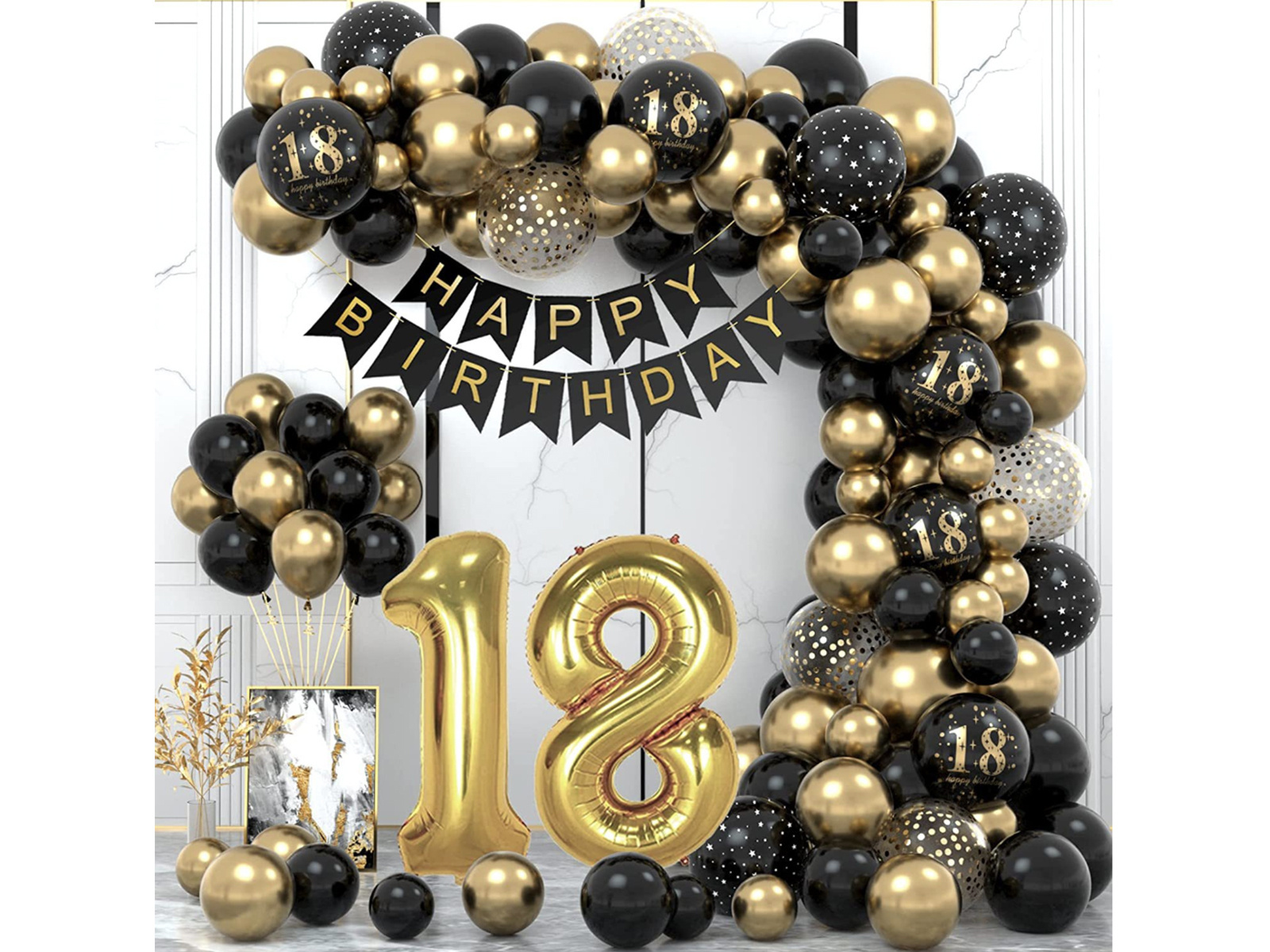 • Az arany és fekete színű lufi füzér tökéletes dekoráció egy tizennyolcadik születésnapi partira. Fotófalként is jól működik.