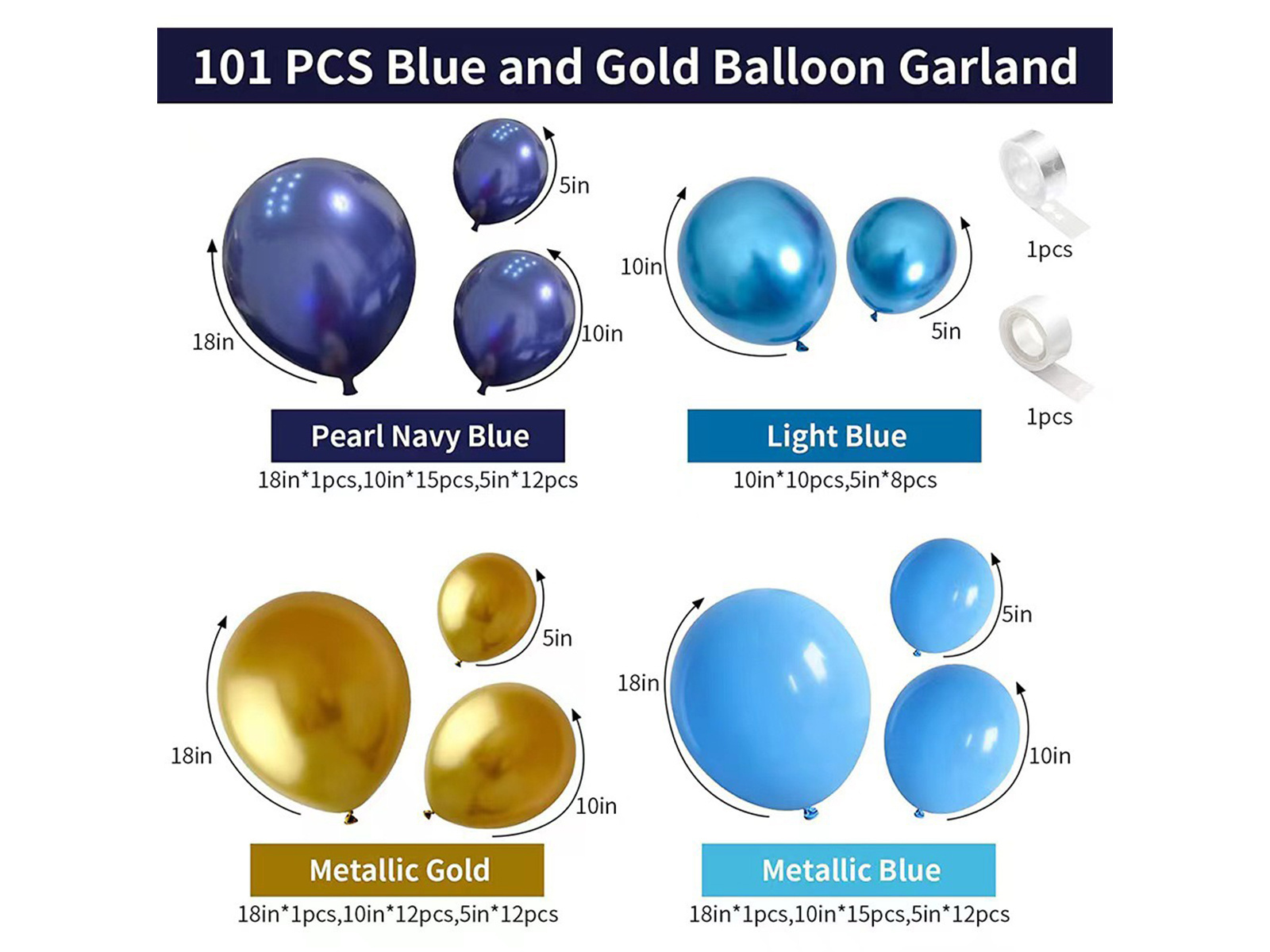 Zestaw balonów do girlandy balonowej złoto--niebieski - 91 szt.