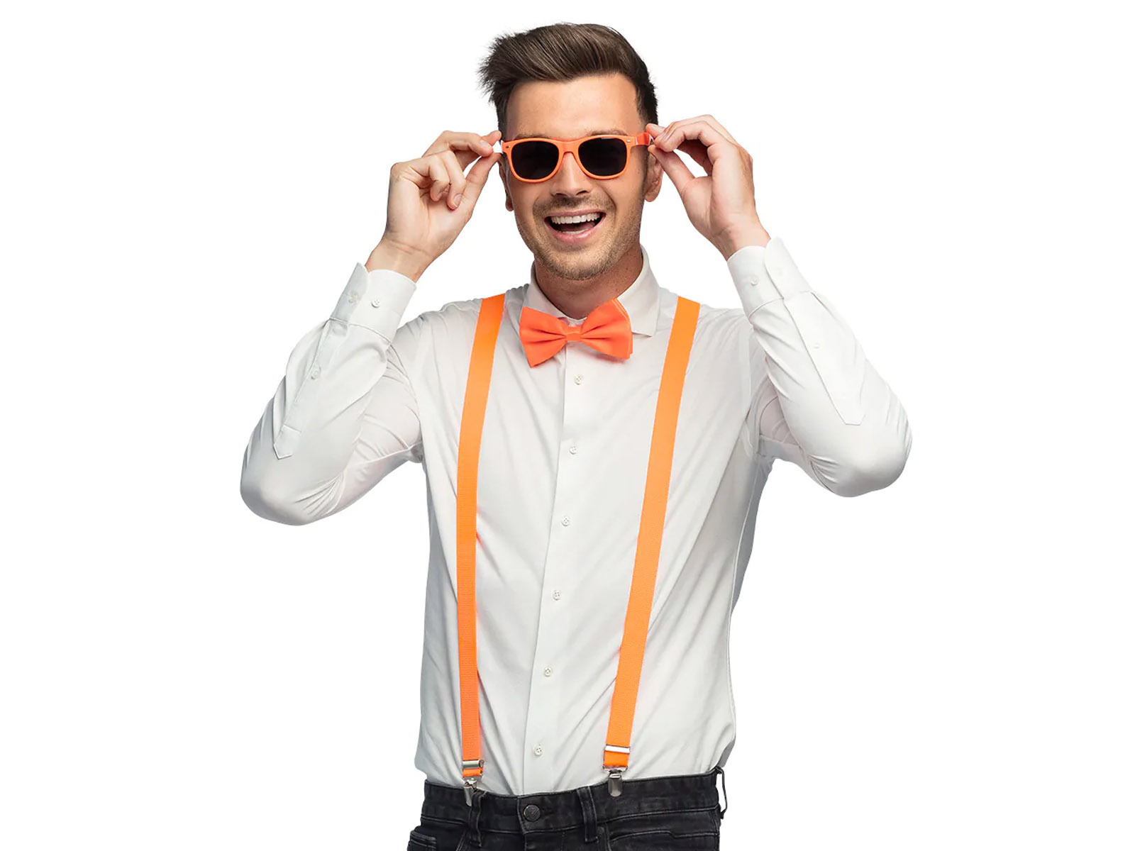 • Kiegészítő készlet neon narancssárga színben. Tökéletes egy diszkó neon partihoz.